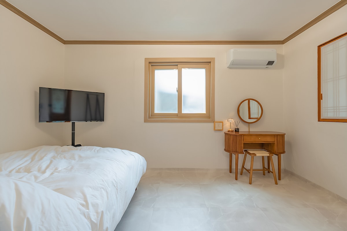 J-House es un alojamiento tipo casa de campo que se completó en septiembre de 2023. Es una casa construida por nuestra pareja con las mejores especificaciones, desde el diseño hasta los materiales. 🏡Nuestra Casa Jay se divide en un cuerpo principal y un anexo. El cuerpo principal es 53 pyeong y el anexo es 12 pyeong. Hay un espacio en el anexo donde se puede asar y comer carne. Geumjandi se planta en 🌳el patio y es hermoso con árboles de arce y flores. Además, la casa J está en el patio. 🐈Aquí vive un gato siamés. Hay una famosa ruta de senderismo Baekhwasan en Taean a solo cien 🏞️metros frente al alojamiento. Si subes la montaña durante unos 10-15 minutos, puedes ver la hermosa vista del mar desde la montaña. El mercado de Taean y el centro de la ciudad están a 🚘5 minutos en auto. A unos 10-15 minutos en coche del 🌅alojamiento, hay playas y mercados de pescado como Mongsanpo Manipo, etc. Puedes comer puestas de sol rojas y un delicioso sashimi. 🏡 Debido a la naturaleza de la casa en el campo, pueden aparecer insectos. Desinfectamos con regularidad. En caso de insectos, usá el medicamento proporcionado.