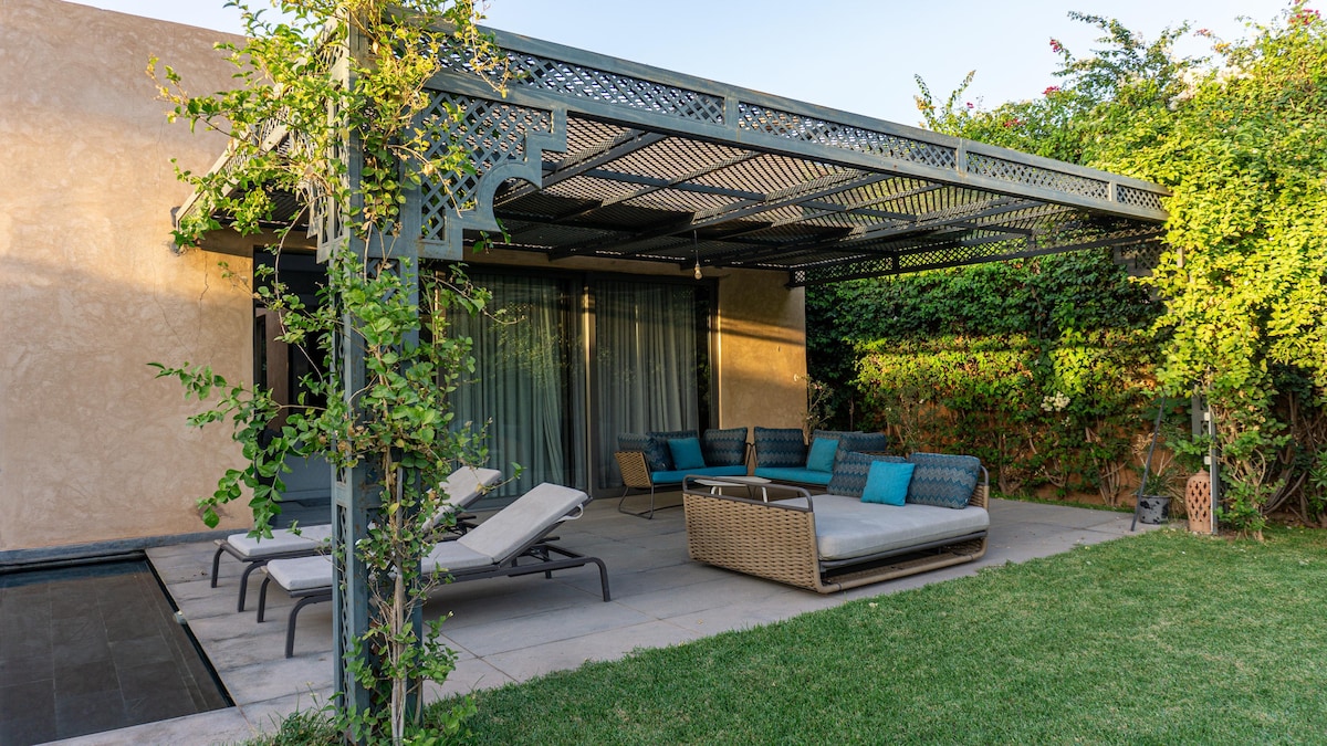 Increíble piscina y patio con jardín enclavado en el barrio más antiguo de la Medina. Aléjate del bullicio y el caos del zoco turístico. Encuentra tu camino por callejones estrechos y tranquilos. Descubre la auténtica medina de los marroquíes. Rápidamente llegas a Riad Roxanne. Entras por una pequeña puerta en una curva tranquila y aislada del callejón. Entras en una selva.