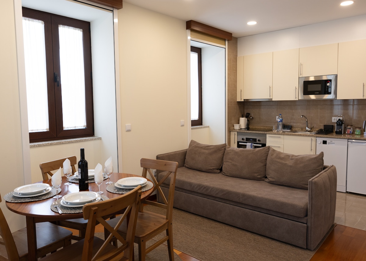 Debido a la pandemia de COVID-19, y por tu seguridad, hemos adoptado un servicio higiénico, certificado por HACCP. Precioso concepto de espacio abierto con 2 camas individuales, cocina totalmente equipada con cocina eléctrica, microondas, nevera, cafetera expreso y todos los electrodomésticos. Calefacción 24:00/día y un armario. Para estancias largas, ofrecemos limpieza y cambio de sábanas y toallas de baño, una vez a la semana, de forma gratuita. Frente a la estación central de metro de Trindade, a 5 minutos a pie de los lugares más bonitos e importantes para visitar.