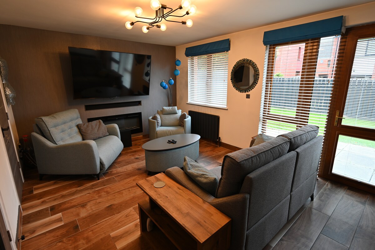 *Please ensure you expand and read through all Additional Policies at the bottom of the listing BEFORE booking. A pre-arrival form will be sent, where you'll add photo ID for all guests, submit card details for the £250 security deposit and sign the House Rules.* Our welcoming pet-friendly home offers 3 bedrooms, 2 bathrooms. Plenty of space to relax in the cosy living room, modern kitchen, or comfy bedrooms. Ideal home for families/groups, free parking and an EV charger for added convenience.