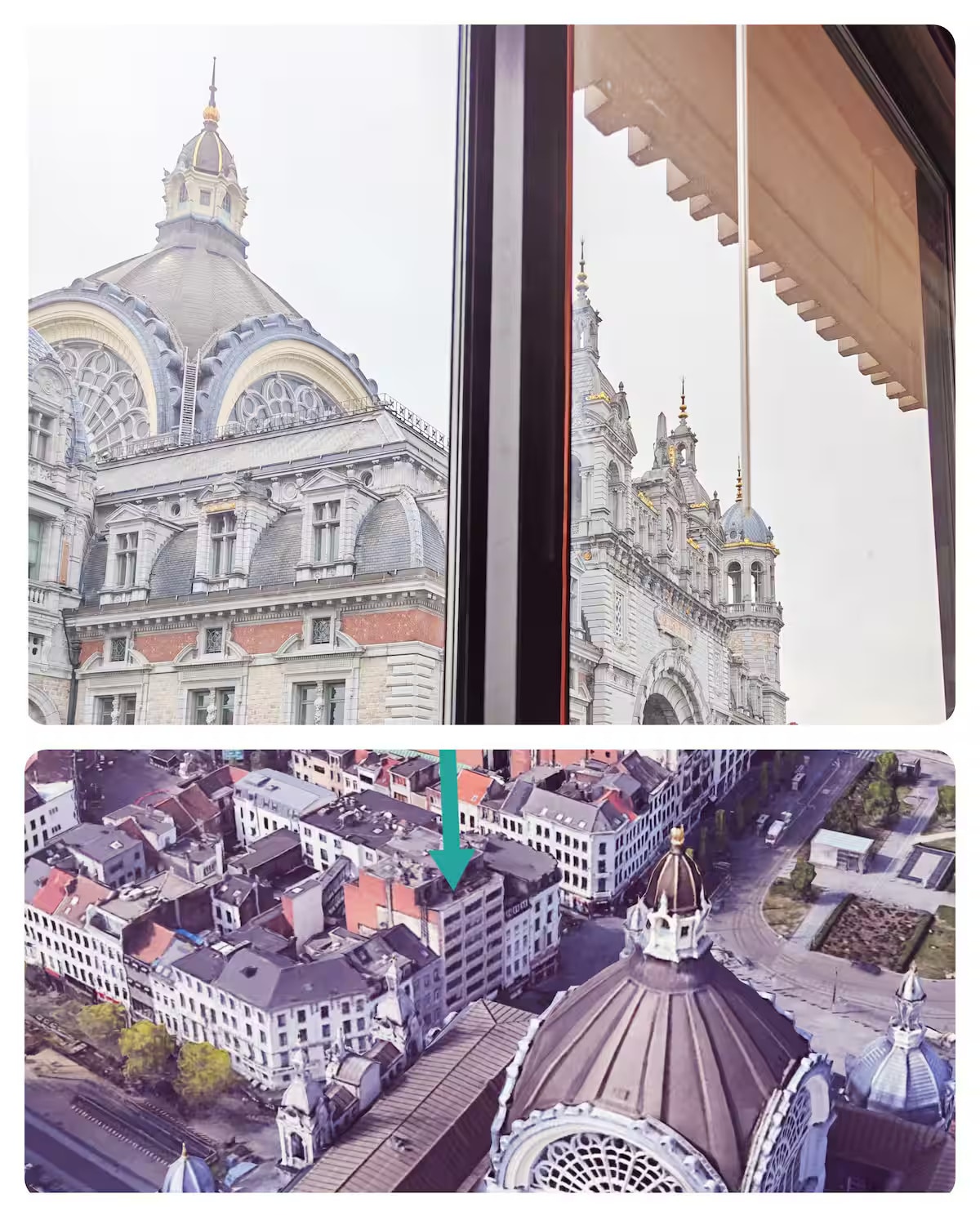 Wake up to a stunning view of Antwerp’s majestic Railway Cathedral in this stylish, light-filled apartment. Modern decor and full amenities offer comfort and charm in the heart of the city. Located just steps from shops and trendy cafes, it’s perfect for couples, solo travelers or families looking to explore Antwerp in style. The famous Diamond District is just around the corner. Enjoy a cozy evening with a glass of wine as the illuminated cathedral fills your window- an unforgettable night view