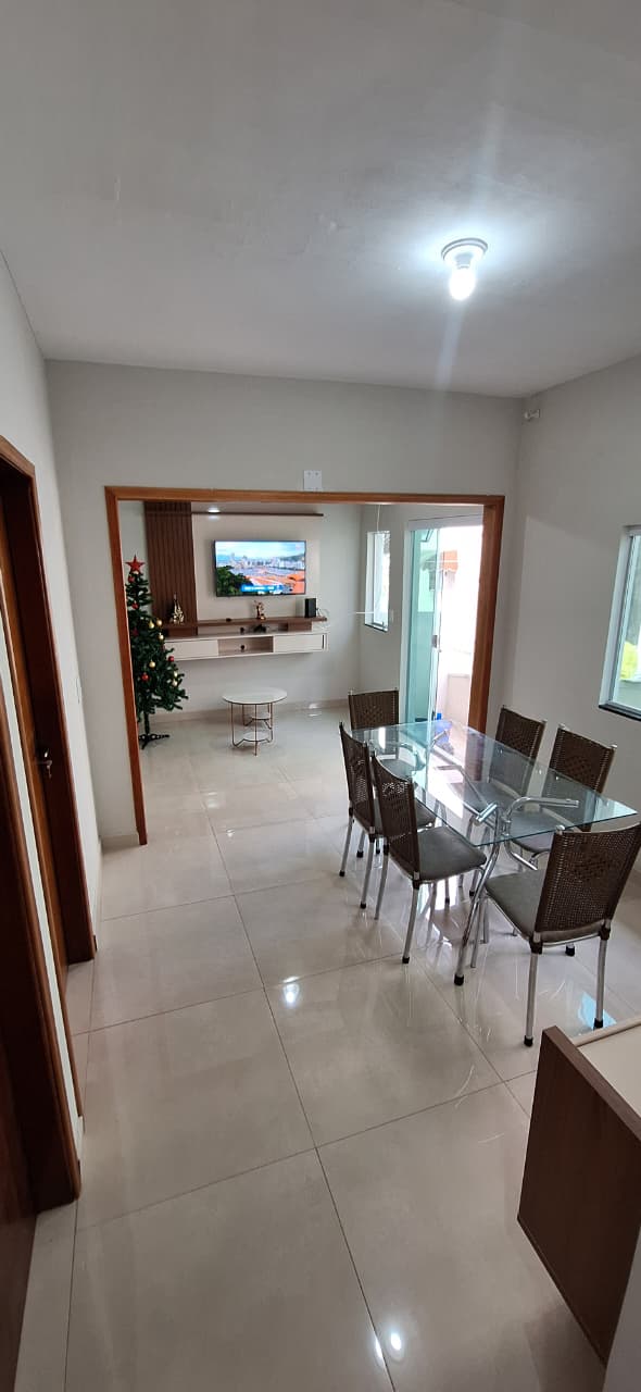 ATENÇÃO: coloque o número exato de hóspedes que irão ficar, pois dependendo da quantidade o valor da diária altera. Casa nova e confortável localizada a apenas 200 metros do Santuário Nacional. Dispõe de 3 quartos, sendo uma suíte. Todos com ar condicionado. Possui cozinha com fogão, geladeira, microondas e todos os utensílios necessários. Além de uma área de lazer com churrasqueira. Garagem para 3 carros. Disponibilizamos roupa de cama, cobertor, travesseiro e toalha.