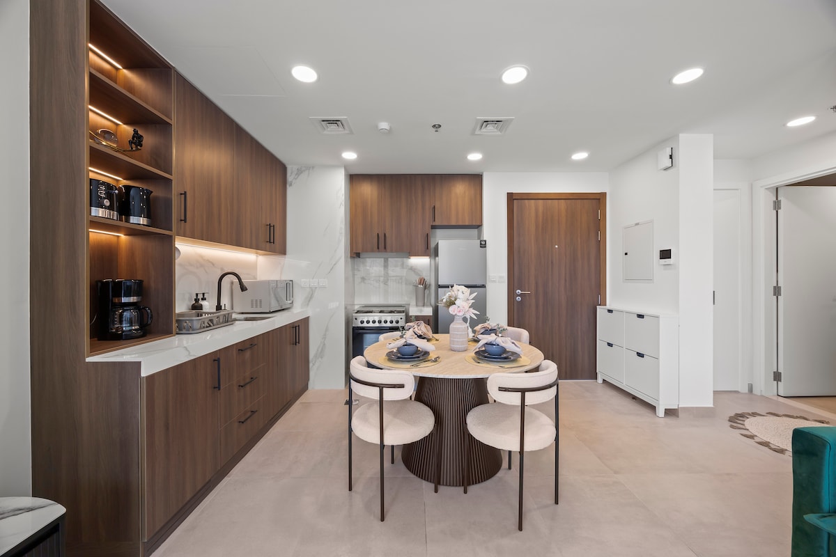 Entra en nuestro impresionante apartamento de lujo de 1 dormitorio, meticulosamente diseñado para ofrecer una experiencia inigualable para parejas o viajeros solitarios. Perfecto para 2 adultos o 2 adultos y un bebé. Desde el momento en que entres, te recibirá un espacio elegante y moderno adornado con acabados de alta gama y detalles cuidados. Relájate en la lujosa zona de estar, prepara una comida gourmet en la cocina totalmente equipada o relájate en el balcón privado con una taza de café mientras te sumerges en la vibrante energía de Dubái.