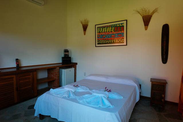 El chalet Serra do Roncador: compacto y rústico, sin embargo, con gran encanto y buen gusto. Tiene una cama matrimonial, baño privado, aire acondicionado y minibar. Se inserta dentro del área del jardín de la propiedad, dándole un encanto adicional y mucha privacidad al anfitrión.