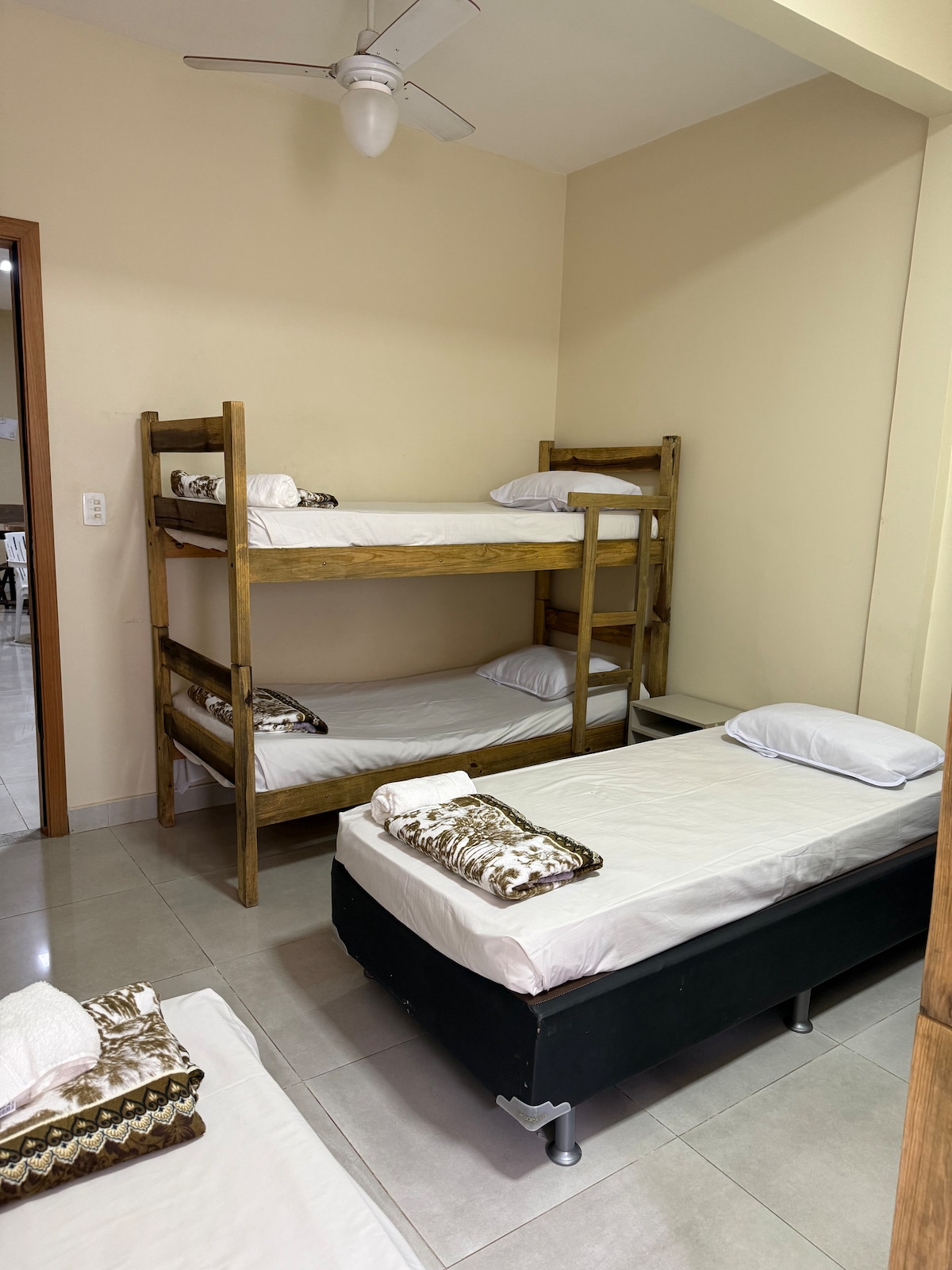 Relájate en este lugar único y tranquilo, muchos espacios verdes, habitaciones individuales con baño, aire acondicionado o camas con ventilador para 2;3;4;5 y 6 personas , según la necesidad de cada grupo, cerca de la estación de autobuses y carreteras de acceso en la capital. Estacionamiento grande, cocina, sala de TV, lavadero. Tenemos las mejores habitaciones o alojamiento ideales para empresas que están con empleados que trabajan en la ciudad.
