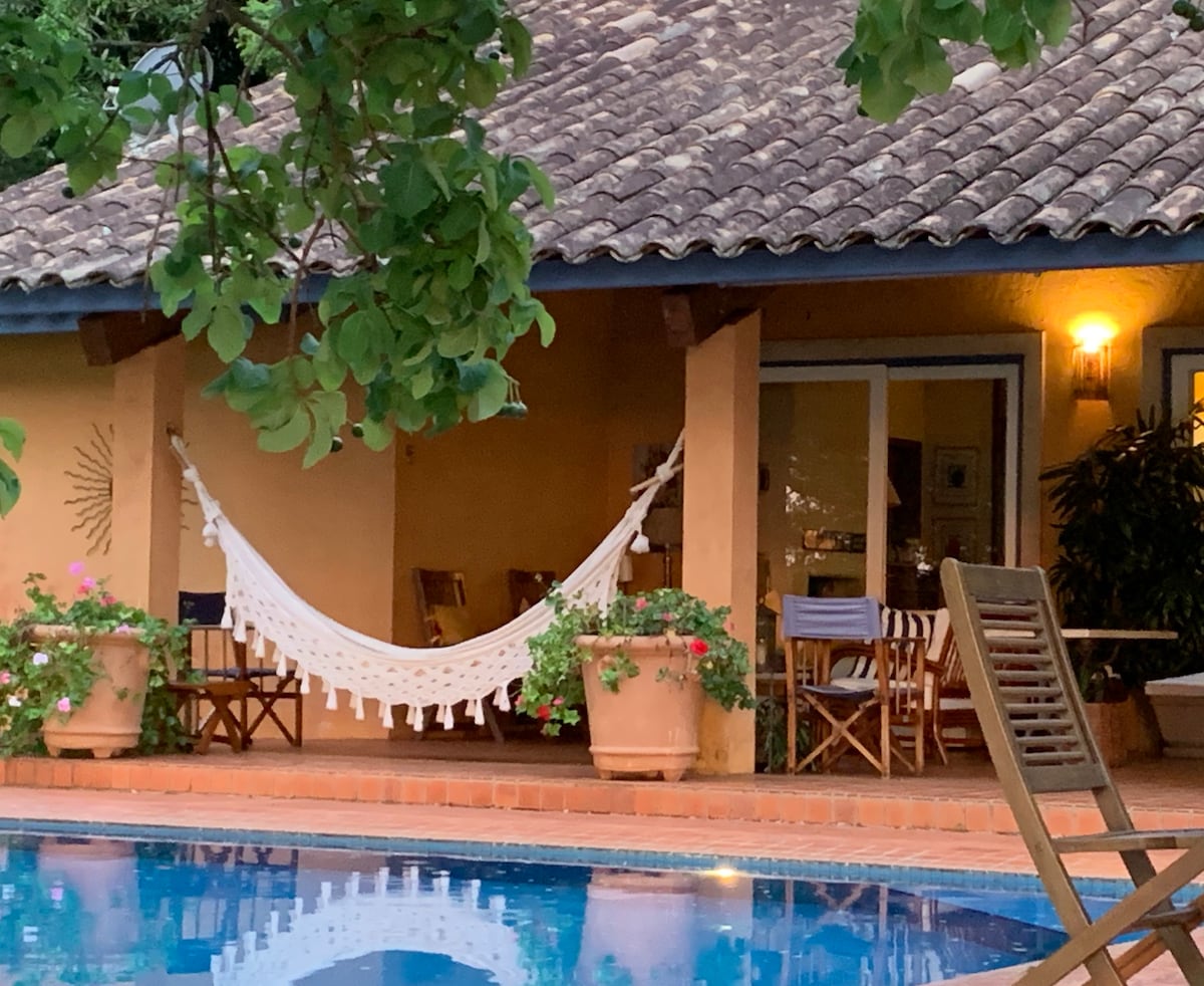 La casa amarilla está frente a la presa Jurumirim, en una parcela cerrada con 24 casas. Está rodeada de un césped con hermosos árboles, y el sol se pone justo frente a la presa. Un espectáculo por pieza. La casa principal tiene 3 suites, sala de estar, comedor, cocina , baño, una amplia terraza con 2 habitaciones y piscina. La casita (detrás de la principal, muy encantadora) tiene 2 dormitorios más, 1 baño y un acogedor salón. Capacidad para alojar cómodamente a 13 personas y un bebé.