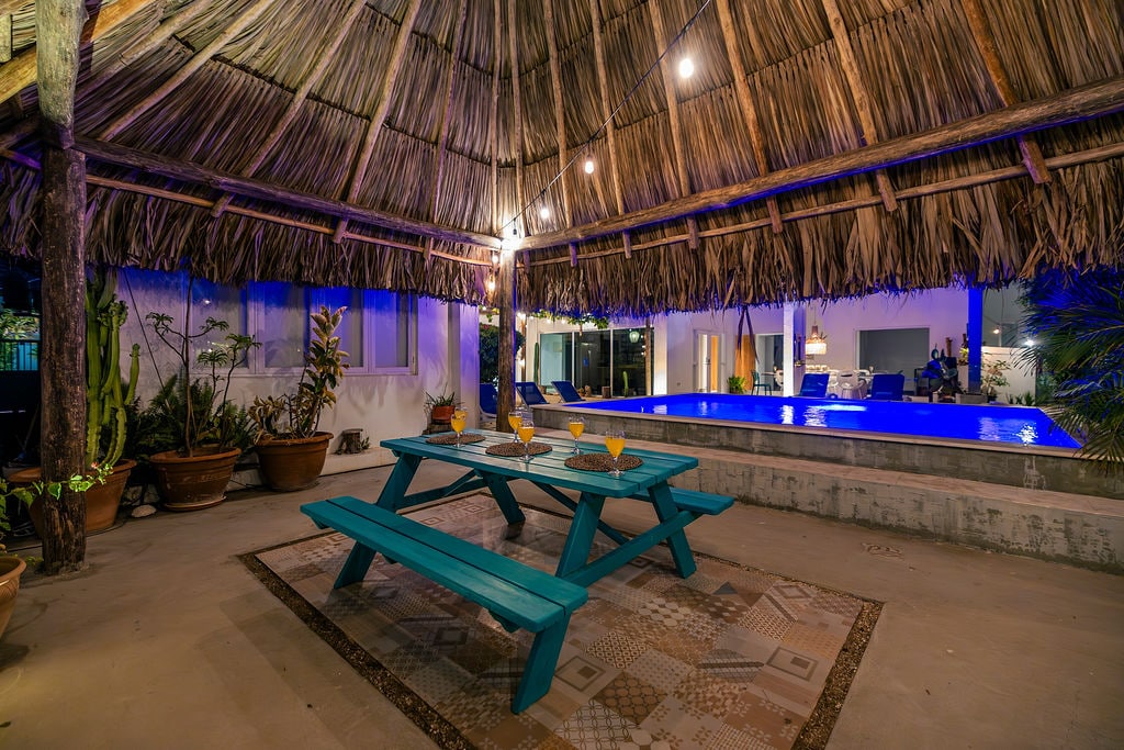 ¡Villa del Sol es la visión brillantemente ejecutada de Pam y Brian Sollinger! ¡Que hicieron realidad su sueño de tener una casa de vacaciones en Aruba! La piscina está rodeada de hermosas palmeras y otra flora y fauna autóctonas, pero lo más importante es que Eagle Beach y Palm Beach están a solo 5 minutos. El comedor al aire libre y la zona de barbacoa están a solo unos pasos de la piscina. Además, a poca distancia a pie, un minimercado tiene todos los elementos esenciales, pero a menos de 5 minutos está Superfoods, ¡el supermercado más grande de las islas!