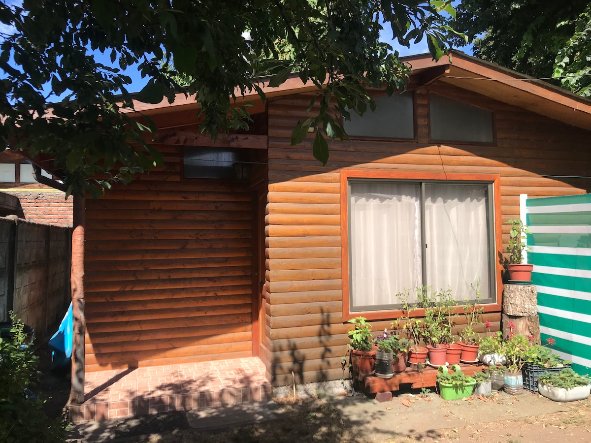 Habitación equipada completa para dos personas en patio trasero. Cocina, lavadora, estacionamiento gratuito, wifi de alta velocidad y parrilla. el lugar es sencillo pero muy acogedor y tranquilo. nos encontramos en Pucón a sólo 5 minutos del centro mismo y unos 25 caminando locomoción publica a la puerta ( colectivo n 3) Uber y algunos negocios cercanos para compra de alimentos basicos