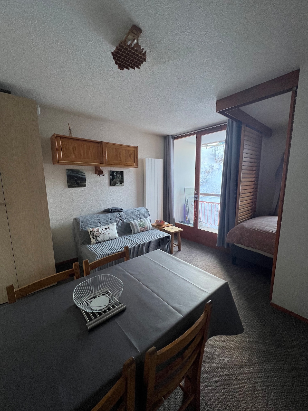Estudio de 30m² para 5 personas, en el pueblo más alto. Acceso directo a las pistas y telesillas al final del pasillo (no se necesita ascensor). Soleado y orientado al sur, con vista a las pistas. Zona de descanso con 3 camas, separada del living. Recepción de conserjería. Las sábanas, las toallas y la limpieza son opcionales. Wifi gratuito en el edificio y estacionamiento (gratuito en verano). Departamento renovado en 2019. Sofá cama nuevo (septiembre de 2024). Es probable que haya productos básicos (papel higiénico, sal, etc.), pero no está garantizado.