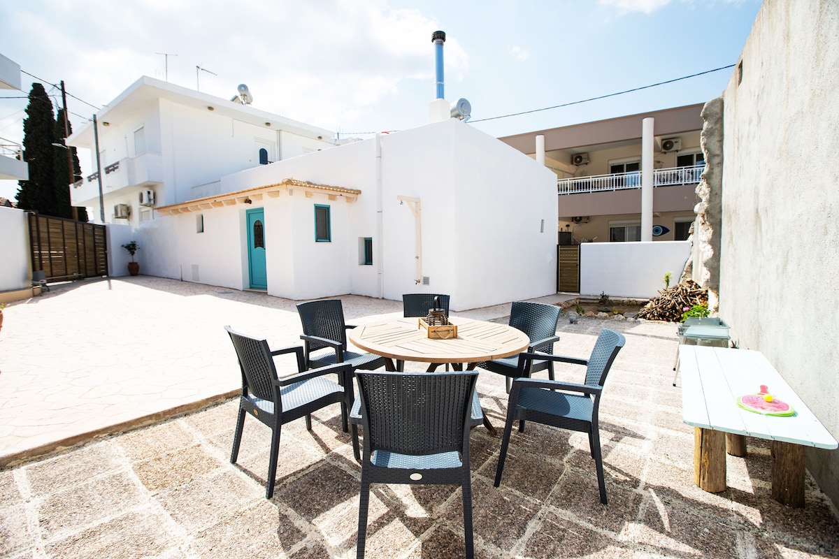 ¡Bienvenido a la isla de Rodas y al pueblo de Archangelos! Es una casa tradicional de 64 metros cuadrados, con un patio privado. Tiene 2 espacios separados. Al entrar en el patio, a tu derecha está la cocina y el baño y a tu izquierda encontrarás el salón y el dormitorio de espacio abierto. Fue renovada en 2019 y ofrece aire acondicionado, wifi y cocina totalmente equipada. Las tiendas están a 4 minutos a pie, la playa más cercana está a unos 8 minutos en coche y la famosa Acrópolis de Lindos está a unos 12 minutos en coche.