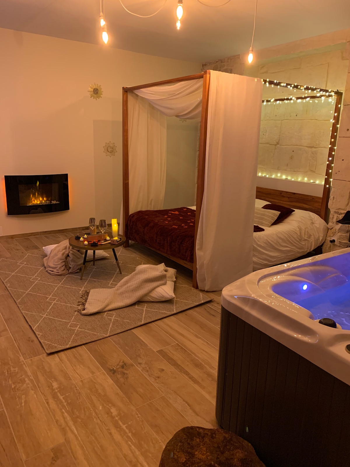Suite con carácter situada entre Nimes y Montpellier y a 30 minutos de las playas. Completamente dedicado a la evasión, el descanso y la relajación. Encontrará todas las comodidades, una cama queen con dosel, un auténtico jacuzzi americano de 3 plazas, una chimenea eléctrica, un televisor de 55 pulgadas, un sofá cama, wifi y Netflix. En el baño encontrará un lavabo doble y una ducha. En la cocina encontrará lo necesario para calentar sus platos. Incluye plaza privada.