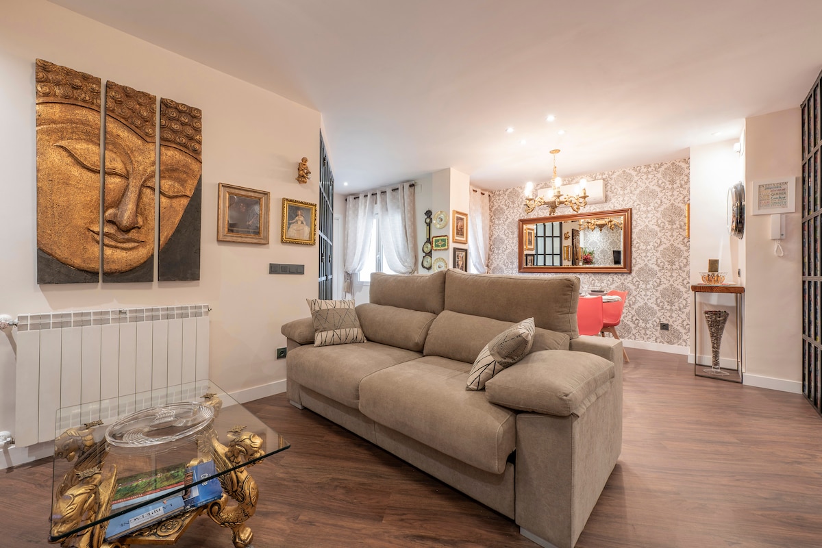 Elegante apartamento tipo loft en el corazón de la ciudad, a pocos metros de la emblemática Puerta del Sol, la Plaza Mayor, El Rastro y otras importantes atracciones turísticas. Cuenta con todas las comodidades: cama king size (180x200 cm), WIFI, Smart TV y cocina totalmente equipada. Muy bien comunicado, con dos líneas de metro a menos de 5 minutos a pie. Gran variedad de restaurantes y locales de moda en la zona. Supermercado abierto 24 horas a 3 minutos a pie desde el apartamento.