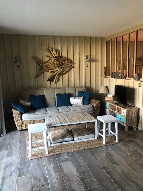 Situado a 50 metros de la playa, a 10 minutos a pie del centro de la ciudad y a menos de 15 minutos de la estación de tren. Renovado en 2015, con todas las comodidades, en una segunda planta con ascensor, orientado al sur, con balcón con persiana manual y aparcamiento seguro. 2 literas (90*190) en la entrada y una cama convertible (140*190) en la sala de estar. Las camas están equipadas con mantas. Se proporciona vajilla. Se proporcionan sábanas y toallas bajo petición (con cargo adicional) . Wifi gratuito.
