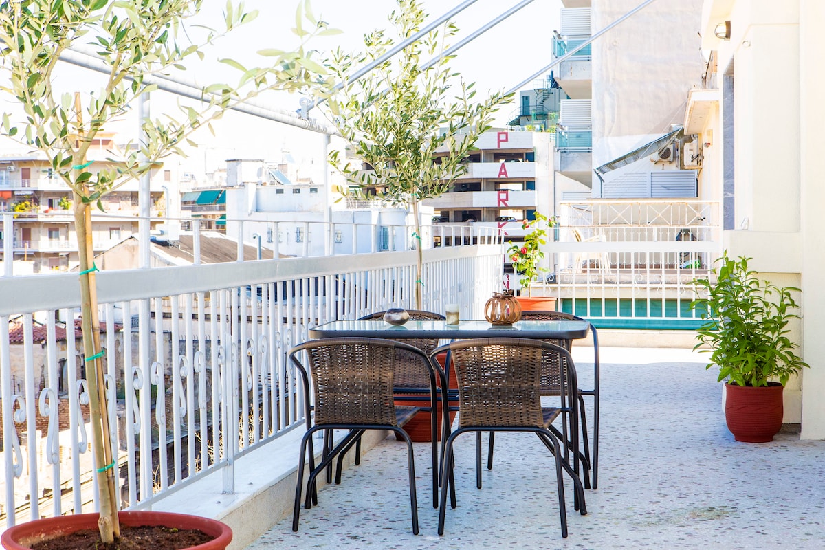 This dream place is an oasis in our city and suitable for the most beautiful moments of your life.The luxurious rooms and the fully equipped kitchen - living room - dining room will make you feel moments of relaxation. The huge terrace with barbecue &sunbeds will give you unique memories.The penthhouse is located near two Metro stations, 12' from the Acropolis and the center of Athens, next to all the shops and supermarkets.The apartment has FREE Air& Water Purifiers, Free Private Closed Parking