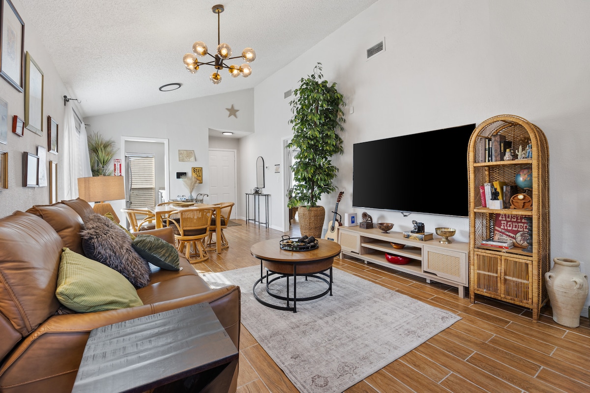 Lo que te gustará ❤️ de tu estancia: - Ubicación céntrica en el corazón de Arlington. - A pocos minutos del estadio AT&T, Texas LIVE, Globe Life Field, Six Flags, Hurricane Harbor, Universidad de Texas en Arlington, Billy Bob's of TX, Famous Stockyards de Fort Worth y aeropuerto DFW. - A 19 minutos a pie del estadio AT&T. - A poca distancia a pie de tiendas, restaurantes y bares. - Fogata/parrilla/comedor al aire libre. - Cocina totalmente equipada (cápsulas/café incluidos). - Internet de alta velocidad. - (3) televisores inteligentes - Lavadora y secadora de tamaño completo.