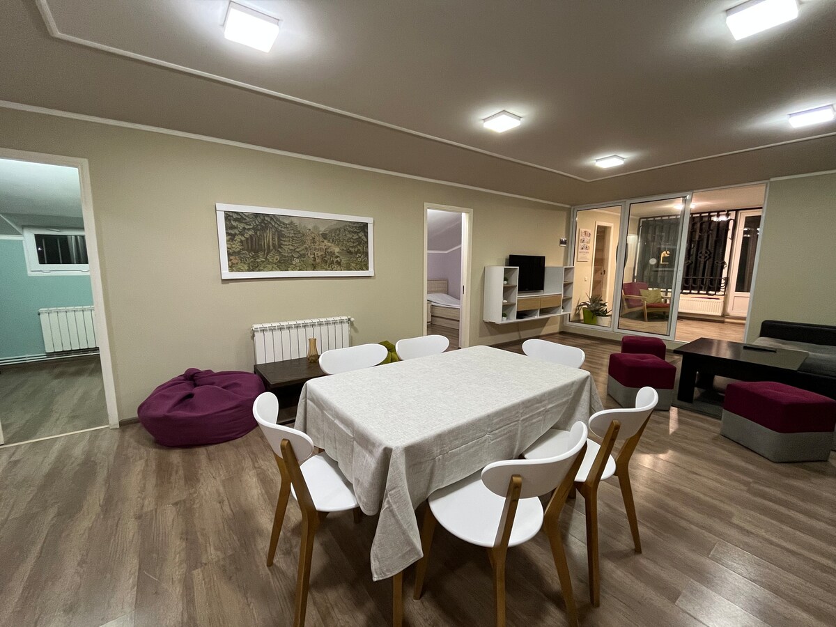 Descubre nuestro apartamento bellamente renovado situado en un barrio residencial sereno. Disfruta de la tranquilidad del área de recreación verde, que ofrece una vista de la capital, el impresionante monte Aragats y un parque acuático cercano. El centro de la ciudad está a solo 4-5 km en coche. Además, nuestra ubicación estratégica te permite estar muy cerca del vibrante Megamall, un encantador zoológico y aventuras conmovedoras en parques acuáticos y complejos deportivos que te dejarán encantado.
