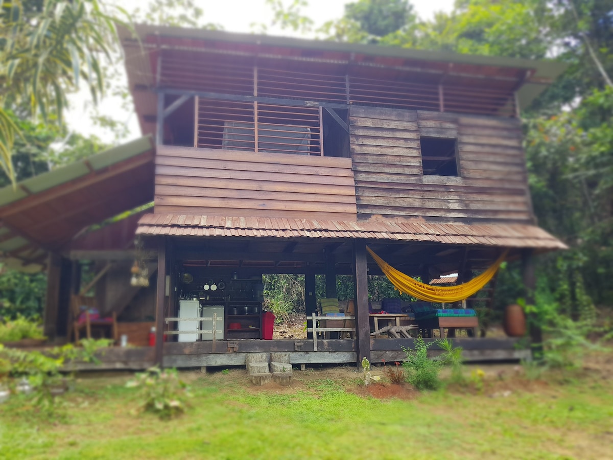 Carbet en medio de un gran jardín arbolado, a orillas de la cala y a pocos metros del río Mana. Ideal para la pesca, la relajación, la tranquilidad y los amantes de las plantas y la naturaleza. Bonitos paseos en los alrededores. Canoa disponible para pasear o pescar por el río.