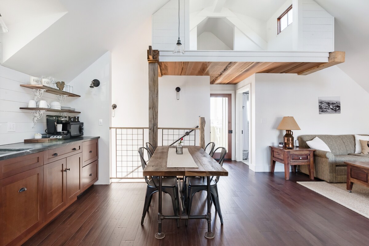 Busca los motivos de gallos que celebran a los famosos pájaros errantes del pueblo, y que se pueden encontrar en todas partes, desde cojines hasta soportes de estantes. Mucho más aquí también es tradicional, incluyendo un tocador antiguo convertido en un tocador moderno. El estilo arquitectónico es de granja moderna, inspirado en la casa histórica. Ten en cuenta que, debido a las características de diseño y las antigüedades, este espacio no es adecuado para niños, mascotas o bebés. Además, las renovaciones de la casa principal están en curso, así que espera proyectos los fines de semana en la planta baja. ¡Ven a saludar! El espacio cuenta con servicios del siglo XXI como wifi, TV de pantalla grande y nevera oculta debajo del mostrador, junto con un diseño del siglo XIX como vigas de granero recicladas, muebles antiguos y escaleras hechas de «palos de sabor» de barricas de vino francesas. El acogedor dormitorio tiene una terraza privada y hay una segunda terraza junto a la sala de estar que es perfecta para ver la puesta de sol. Ten en cuenta que debido a las antigüedades reales, las escaleras y los detalles hechos a mano, este espacio no es adecuado para niños pequeños. Tendrás tu propia entrada privada a la propiedad y dos terrazas privadas. Ten en cuenta que es una unidad de arriba. Si necesitas lavar la ropa, estaremos encantados de hacerlo. Solo tienes que decírnoslo. Asumiremos que deseas privacidad, por lo que no interactuaremos a menos que lo solicites. Pero estamos muy disponibles por mensaje de texto para responder a cualquier pregunta, lidiar con inquietudes o dar sugerencias sobre qué ver, hacer y comer. Por lo general, estaremos en el sitio trabajando en un proyecto o haciendo "cosas familiares", por lo que podemos lidiar con cualquier problema que pueda surgir muy rápidamente. La casa de huéspedes se encuentra en el pueblo de Arroyo Grande, en Cherry Creek Estates. El barrio es muy peatonal y la gente viene de todas partes para pasear a sus perros, montar en bicicleta o simplemente pasear y disfrutar de la pintoresca comunidad. Estamos a pocos pasos del pueblo de Arroyo Grande, que cuenta con todo tipo de restaurantes, tiendas y servicios. Algunos lugares notables para cenar son Mason Bar and Kitchen, Rooster Creek Tavern, Gina's Italian Restaurant, Jaffa Cafe y McClintocks. Para obtener más información, consulta el sitio web de Arroyo Grande Village. En coche, se encuentra a 5 minutos de Pismo Beach y Oceano State Beach, y a 15 minutos de Avila Beach. Las bodegas galardonadas están cerca: Laetitia Winery está a 5 minutos al sur y Talley Vineyards Tasting Room está a 5 minutos al este. Un montón de bodegas de Edna Valley están a 5-15 minutos. Si necesitas transporte público, la parada de autobús South County Transit está en el pueblo. Hay servicio de taxi local disponible y los conductores de Uber están activos en la zona. Tenemos un perro de montaña bernés, pero no tiene acceso a las zonas que utilizarás como huésped. Vivimos en un barrio «normal», por lo que es importante tener en cuenta que debe haber silencio después de las 2:00 a. m. y antes de las 8:00 a. m. Siempre tenemos proyectos en marcha, así que espera ver mejoras en la propiedad o trabajos en curso cada vez que vengas. Esto puede significar que estaremos construyendo algo durante el día, ¡así que sal y saluda y mira lo que estamos haciendo! *** Ten en cuenta que no se permite fumar en ningún lugar de nuestra propiedad.