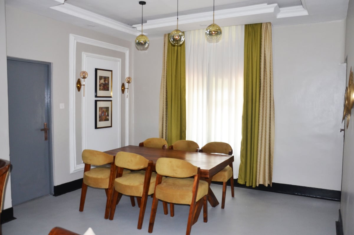 El edificio se encuentra en un barrio tranquilo y hay un guardia de seguridad presente las 24 horas del día, los 7 días de la semana. Las carreteras aún están en construcción, por lo que los huéspedes serán recogidos cerca de la Catedral de Ediofe. Las habitaciones tienen un alto nivel europeo y son muy amplias y hay una caja digital presente para ver DSTV.