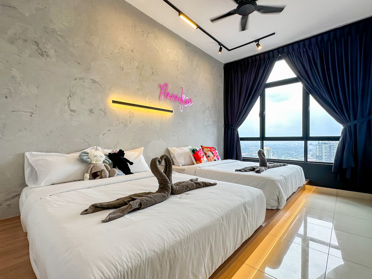 KAWS theme 2BR unidad en el piso MÁS ALTO del apartamento completamente nuevo, Twin Tower Residence con camas Queen de primera calidad, ¡puede dormir para 6 personas! Tenemos televisión inteligente con Netflix, Youtube y dispensador de agua potable. ¡Disfruta de las magníficas instalaciones con piscina infinita que supervisan JB Central/Custom! Excelente ubicación a pocos pasos de 5 minutos a pie de CIQ y Custom - A 5 minutos a pie de JB CIQ. - A 10 minutos caminando de City Square /JBCC. - 5 minutos en auto del centro comercial R&F. - A 10 minutos en coche de Midvalley Southkey.