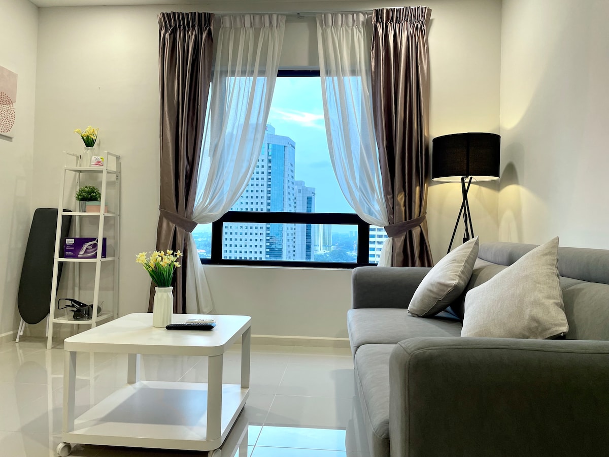 (1+1 dormitorios y 1 baño) Apartamento contemporáneo, moderno y acogedor en el corazón del centro de la ciudad de JB. Adecuado para familias de 4 personas, amigos y grupos de negocios. **A 5 minutos de CIQ, City Square, KSL, Pelangi y Larkin **A 8 minutos de Mid Valley Southkey, Larkin Sentral y Sentosa **A 15 minutos en coche del centro comercial Paradigm, Sutera, Skudai y Mount Austin Televisor inteligente✔ 4K. Wifi de✔ alta velocidad y mesas de trabajo con enchufe de extensión. ✔ Lavadora ✔ Aire acondicionado en todas las habitaciones. Consola ✔ Atari, Mahjong y juegos de mesa. ✔ Aparcamiento GRATUITO para 1 coche.