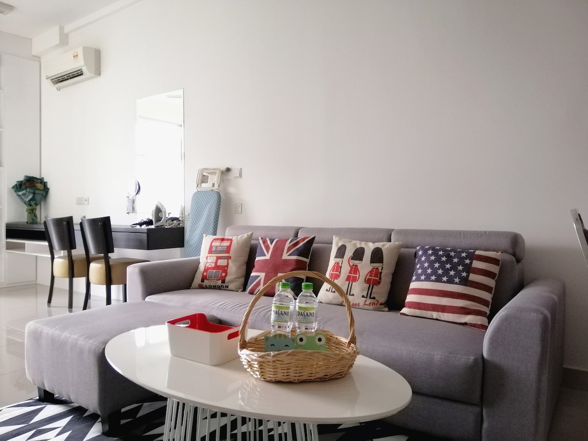 (1+1 dormitorios y 1 baño) Apartamento contemporáneo, moderno y acogedor en el corazón del centro de la ciudad de JB. Adecuado para familias de 4 personas, amigos y grupos de negocios. **A 5 minutos de CIQ, City Square, KSL, Pelangi y Larkin **A 8 minutos de Mid Valley Southkey, Larkin Sentral y Sentosa **A 15 minutos en coche del centro comercial Paradigm, Sutera, Skudai y Mount Austin Televisor inteligente✔ 4K. Wifi de✔ alta velocidad y mesas de trabajo con enchufe de extensión. ✔ Lavadora ✔ Aire acondicionado en todas las habitaciones. Consola ✔ Atari, Mahjong y juegos de mesa. ✔ Aparcamiento GRATUITO para 1 coche.