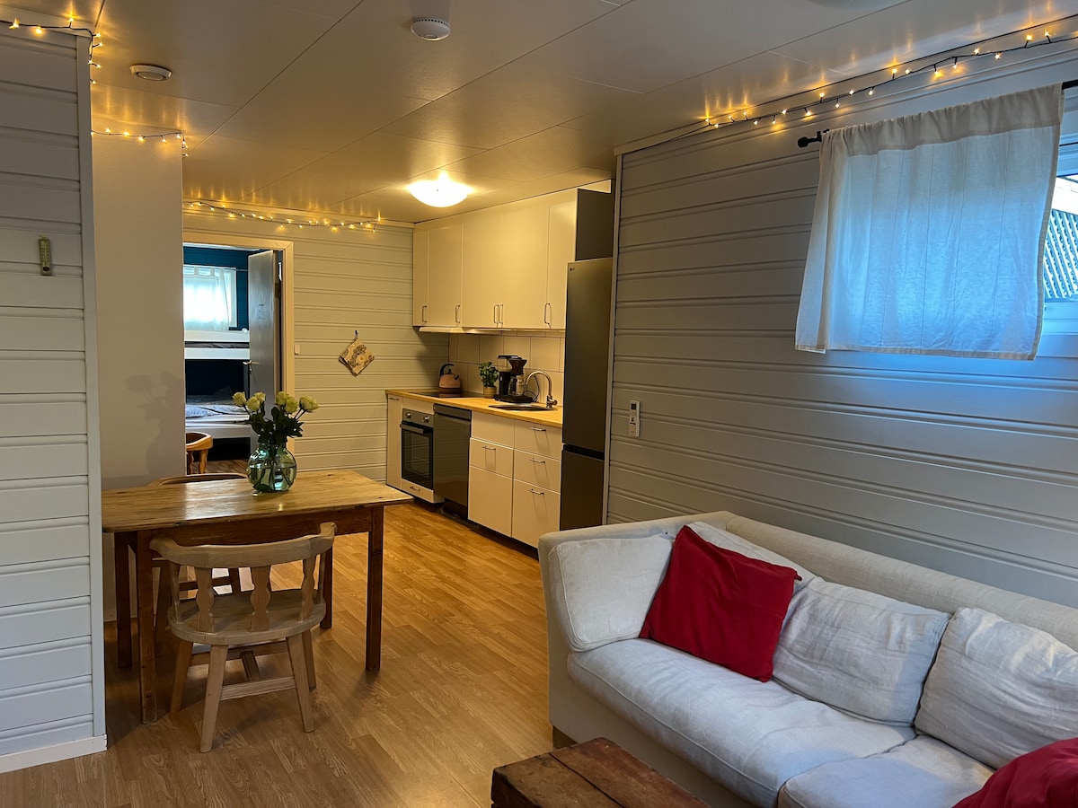 Esta joya junto al mar ofrece a sus visitantes recargar completamente sus energías en el hermoso y tranquilo entorno del oeste de Noruega. Aquí, puedes utilizar el kayak y la tabla de paddle surf de forma gratuita y explorar la naturaleza en su riqueza, ¡incluso podrías ver una foca aparecer cerca! También hay un trampolín y una zona de juegos para niños, y las aguas poco profundas junto al muelle son ideales para que los niños pesquen pequeños cangrejos y camarones. Maravillosas oportunidades de senderismo en las montañas cercanas, ofrecen recuerdos que no olvidarás. ¡Hola!