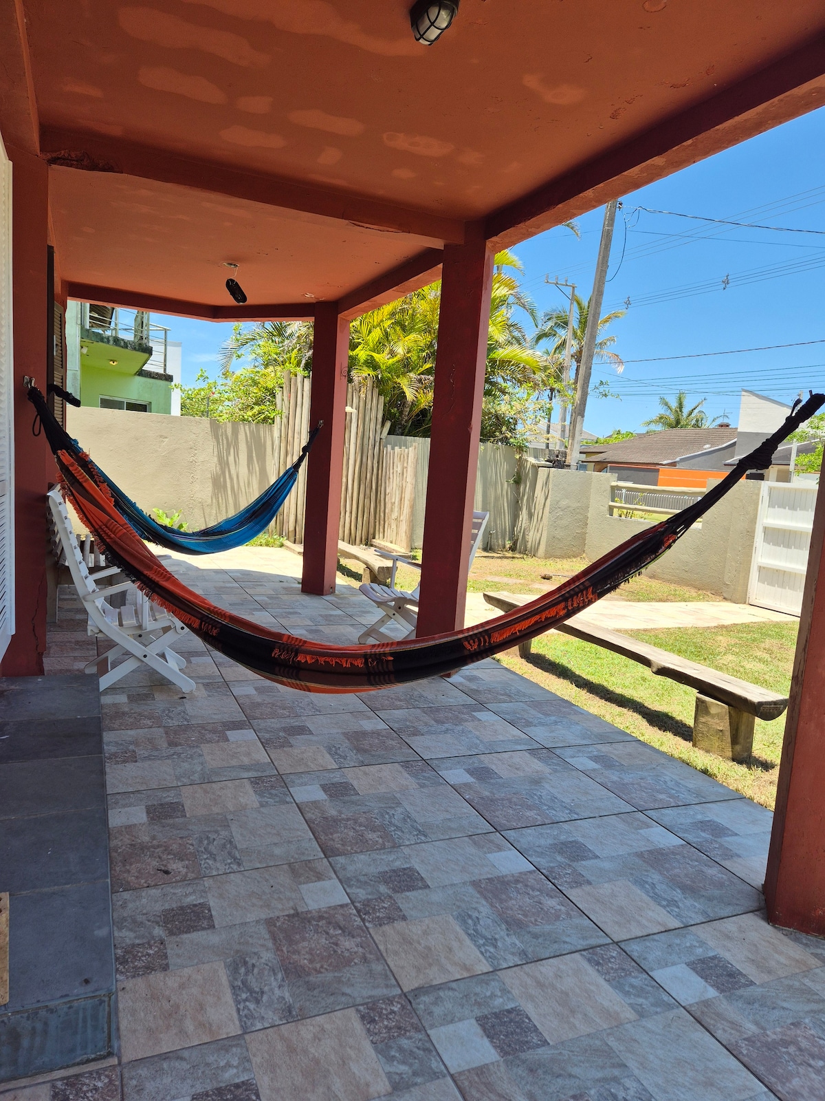 Una casa perfecta para descansar, con el sonido de las olas del mar. Y también para... ¡surfear! ¿Alguna vez has pensado en aprender a surfear? Nuestras olas son fáciles y la playa es poco profunda. Frente a la casa, hay una losa natural de piedras, perfecta para la pesca con anzuelo y trampa. De junio a agosto, ¡se puede ver la pesca de la Tainha aquí en frente! Estamos en el centro de la ciudad, a 1 cuadra de restaurantes, supermercados, bancos, tiendas y la Lonja de Pescado. ¡Toda la comodidad de caminar, en la playa y en la ciudad!