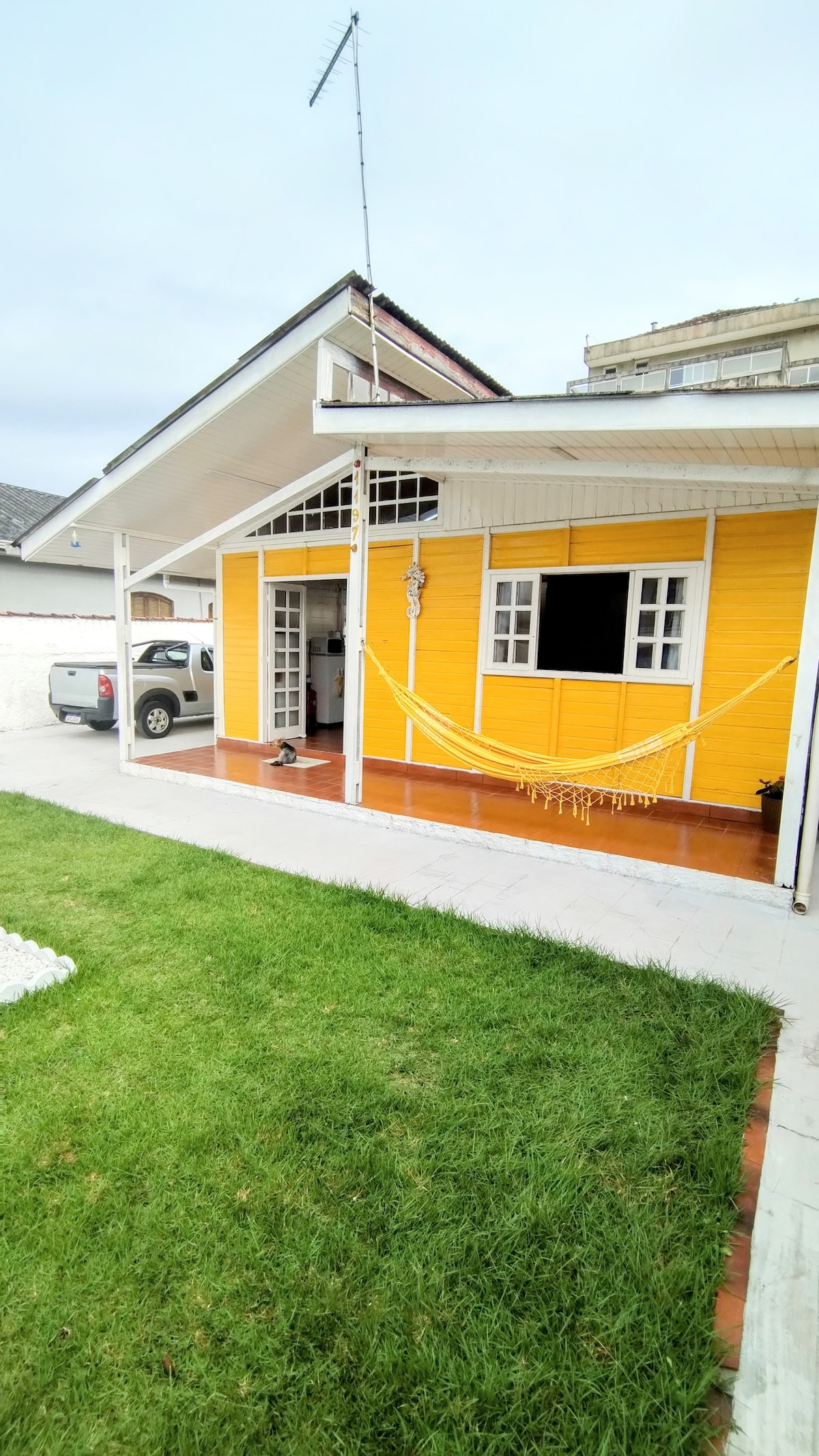 Fica a 1 quadra da praia. Com sala/cozinha (bicama) + 1 quarto (suíte, cama de casal), tem todo conforto para o hóspede economizar $ e cozinhar no local (fogão, geladeira e utensílios domésticos, churrasqueira e lavanderia externa). Acomoda até 4 pessoas. Fica nos fundos da minha casa, possui portão divisorio entre as casas. É permitido pets, desde que dóceis. O carro deve ficar estacionado paralelo à rua (vizinhança tranquila). Avisar sobre checkin após as 21h, pois serão avaliados .