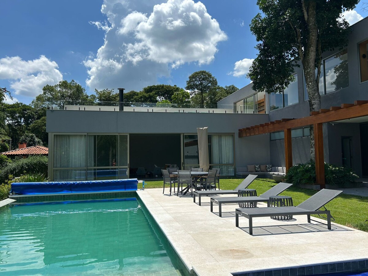 Casa bellamente decorada, cómoda y acogedora de alto nivel. La casa tiene 4 dormitorios, 3 de los cuales son suites. Ubicado en una comunidad cerrada cerca de la naturaleza, es una excelente opción para reunir a familiares y amigos junto a la chimenea los días de invierno. Una hermosa piscina climatizada (calefacción solar y eléctrica) Para los amantes de la comida, la casa ofrece barbacoa con todos los utensilios , estufa de leña y horno de pizza. ❌NO SE PERMITEN FIESTAS❌ 🐶SE ADMITEN MASCOTAS CON TARIFA (tamaño pequeño)