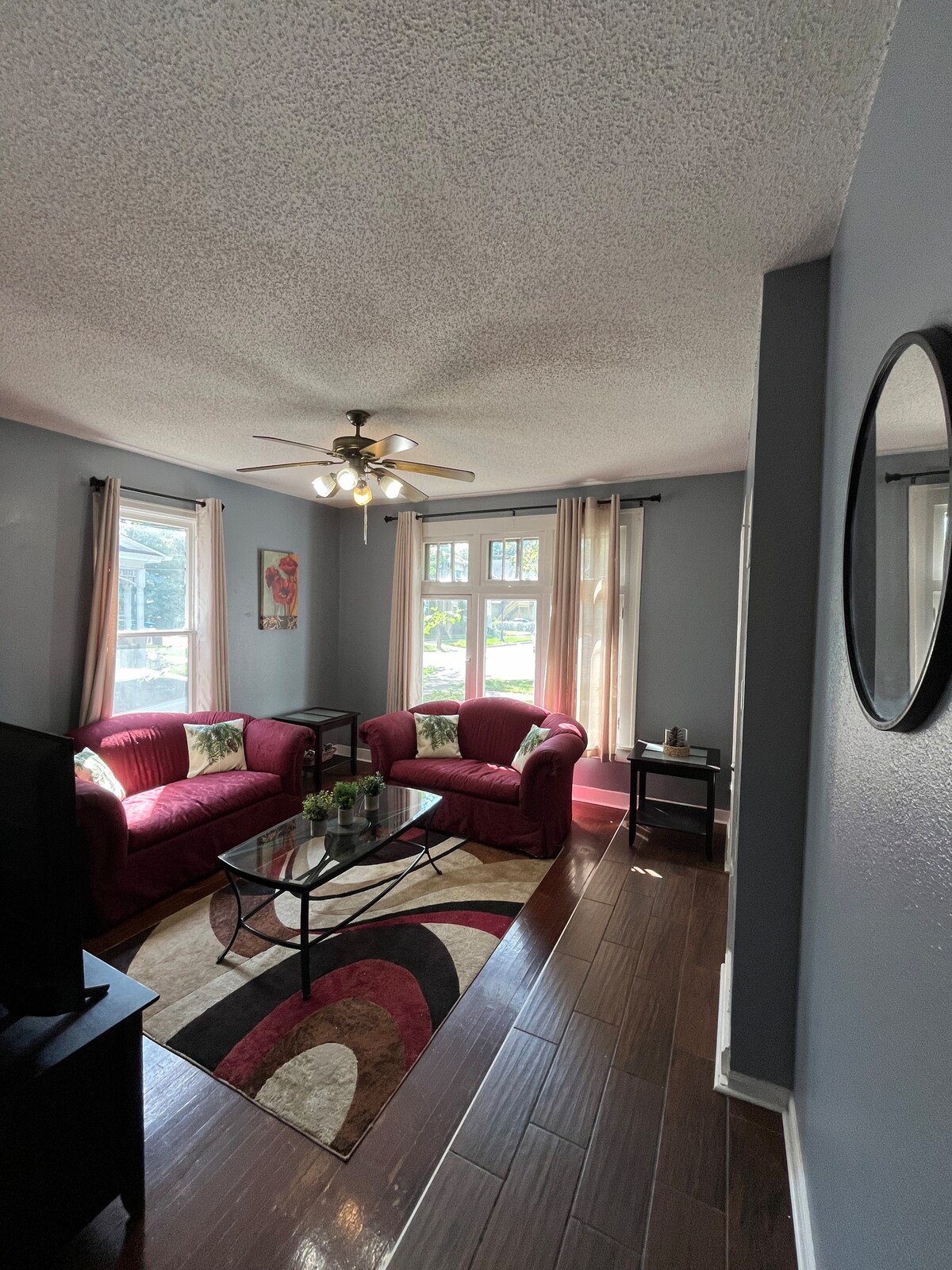 Relax and enjoy this sunny, fully outfitted family haven! ### FUN: Finished basement with a Movie Theater (projector), ping-pong, and PlayStation. We even have a toy-filled dresser for the kids! ### COMFORT: Fully stocked chef’s kitchen (mixer/Air Fryer), King/Queen beds, and a large master suite. ### PERKS: Huge yard with a stone patio, grill, and fire pit. Includes a 2-car garage and in-home laundry. ### SAFE: Professionally cleaned and sanitized before every stay for your peace of mind.