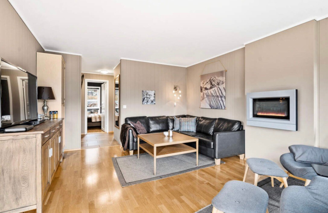 Moderne hytte fra 2021 med panoramavinduer fra gulv til tak som åpner hytten mot en spektakulær utsikt. Utsikten endrer seg med årstiden. På sommeren beiter sauene rundt hytten og er du heldig kommer det en hare hoppende. På vinteren er det ski inn/ut. Hytten har både varmepumpe og peis som gir en lun stemning. Den romslige loftstuen med TV, Lego og spill er perfekt for barna. Hytten passer perfekt for to familier. Er dere bare voksne anbefales maks 8 personer.