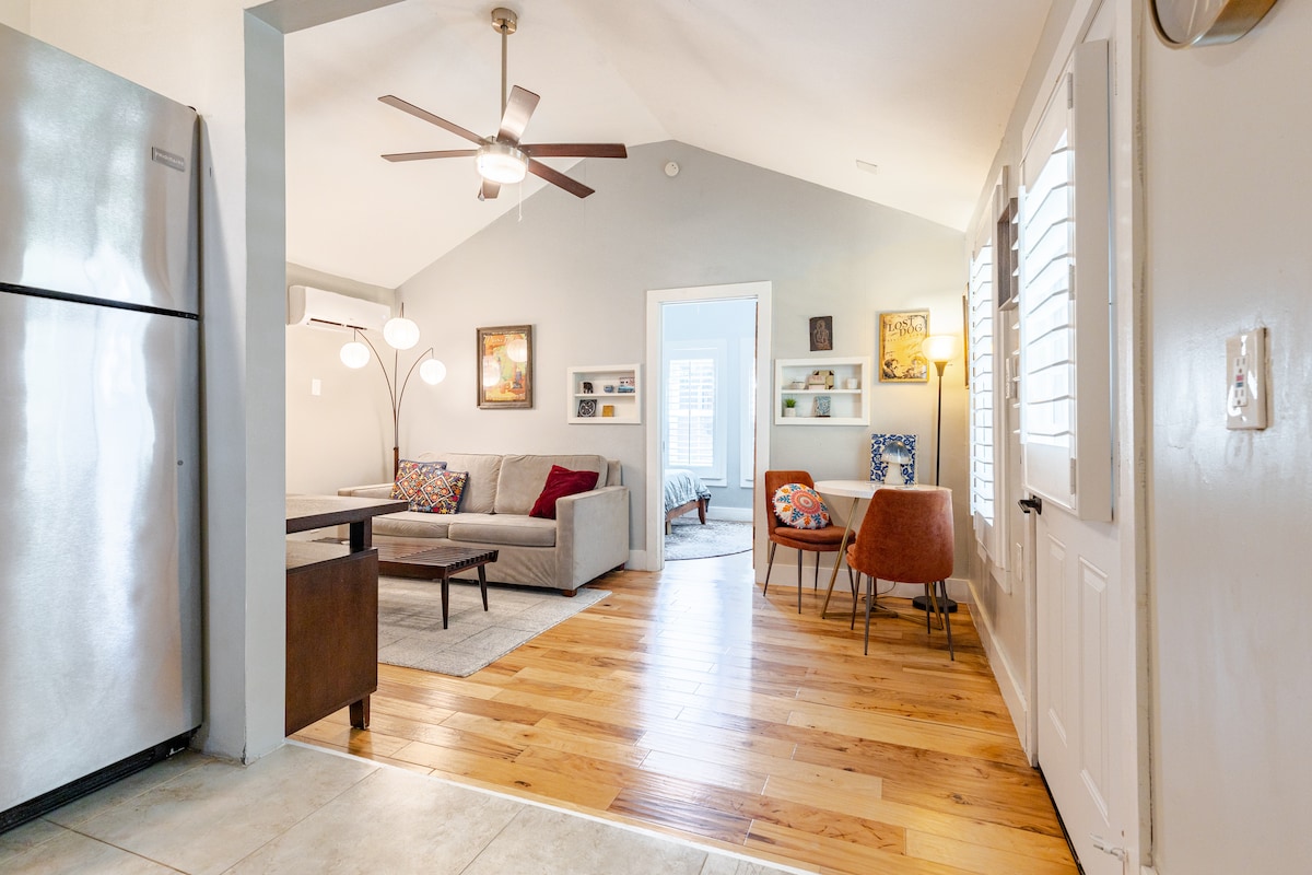 Hola. Bienvenido a Casa Plata, una casita moderna con una estética genial de Austin. La casa de huéspedes se encuentra en un bolsillo residencial tranquilo y muy transitable dentro de los distritos de entretenimiento 11 y 12 .º de East Austin, conocidos por sus restaurantes, salones y lugares de interés aclamados a nivel nacional. Llena de luz y rodeada de un dosel de árboles, esta casa de huéspedes del segundo piso tiene capacidad para cuatro personas cómodamente. Tómate un café con leche en la terraza o disfruta de la ducha al aire libre bajo el gran cielo de Texas. Sin tarifa de limpieza.