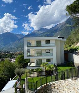 Bienvenido al apartamento panorámico "corazón y vista" - paraíso con vistas – en la casa de madera ecológica. En las montañas en casa, en medio de la naturaleza, una ubicación panorámica tranquila con fantásticas vistas de Merano y sus alrededores, tomando el sol, hermoso para enamorarse, ¡romántico, encantador, único! El apartamento panorámico "Heart & View" es un ático abierto de 70 m2 con muebles de lujo y un ambiente agradable. Nos vemos pronto.