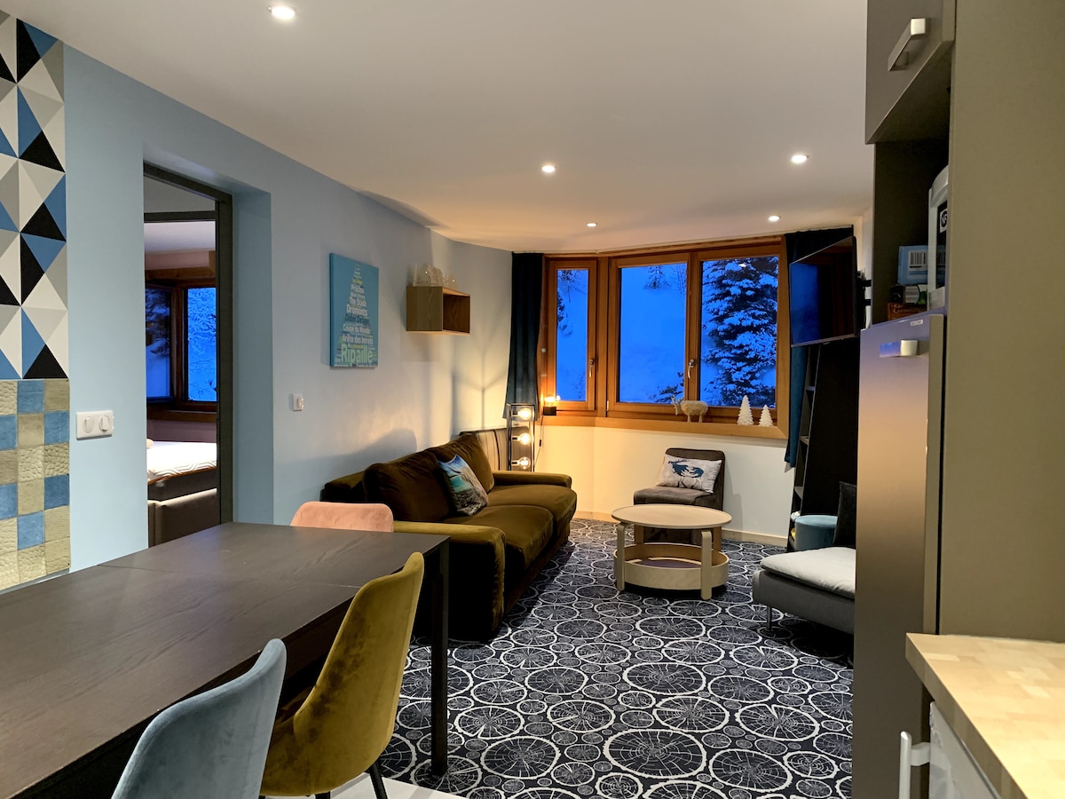 Apartamento renovado y acogedor en el centro de Avoriaz. El departamento tiene una vista impresionante sobre las montañas y Morzine. El apartamento tiene dos dormitorios, un baño y una gran sala de estar con una cocina totalmente funcional (hornillas, un horno/microondas, una máquina Nespresso, una caldera, una fondue y una gran sala de estar con canales internacionales y muchos juegos de mesa disponibles para adultos y niños. También hay lavadora y secadora de ropa. Los cargos incluyen sábanas, toallas y limpieza.