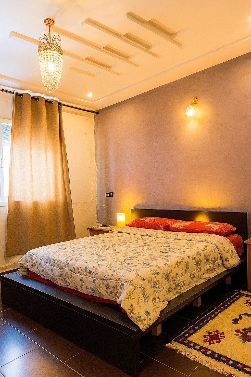Relájate en este encantador apartamento, idealmente situado en el corazón de la ciudad de Azrou. Este alojamiento luminoso y cómodo puede alojar incluso a más de 6 personas y cuenta con tres dormitorios, dos baños y una cocina totalmente equipada. Disfruta de Wi-Fi, un amplio salón y un balcón perfecto para tomar el aire. A dos pasos de los sitios imprescindibles, es el punto de partida ideal para descubrir la región de Ifrane y las montañas del Atlas Medio.