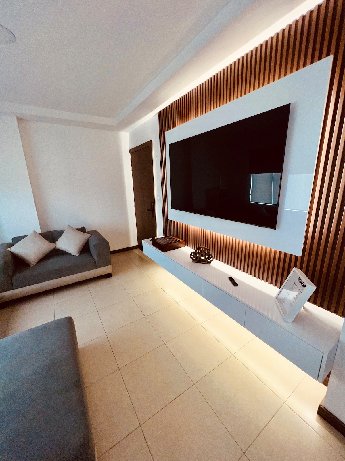 Este elegante alojamiento es ideal para noches de pareja, familia corta o estadías largas de trabajo. Contamos con jacuzzi dentro del departamento, chimenea de bioetanol y una sala con una pantalla de 85” para las mejores noches y experiencias inolvidables de sus vacaciones. Cama tamaño king y hermosos balcones. Cocina propia con todos los implementos necesarios. Cerca de lavanderías, tiendas, restaurantes. Parqueadero propio y cámaras con vista a la calle para su tranquilidad.