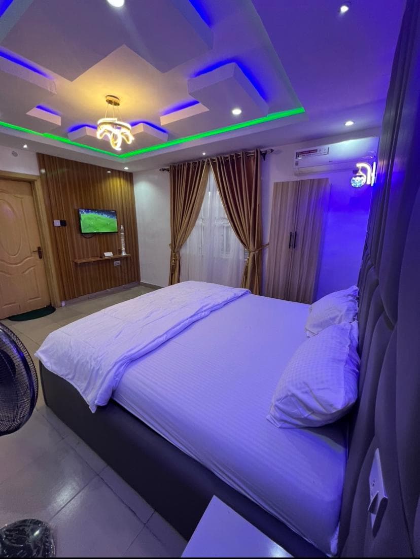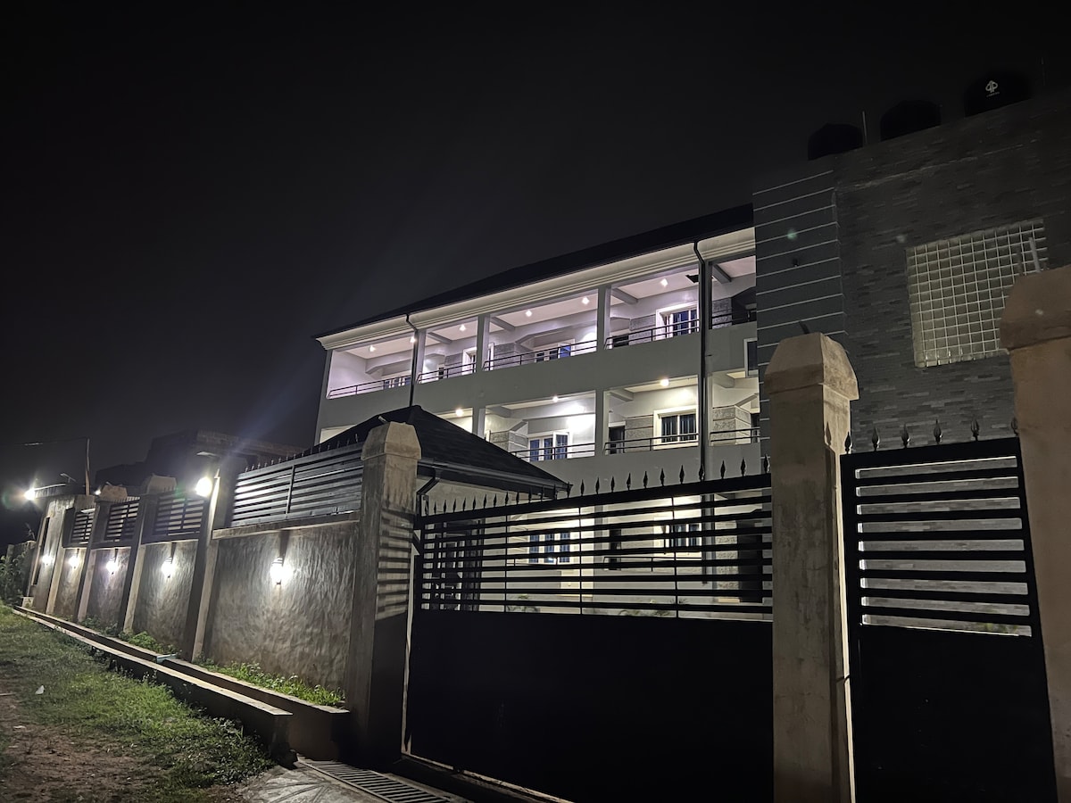Nuestra casa está cerca del centro de la ciudad con buen acceso por carretera. El ambiente acogedor y sereno da una sensación de hogar lejos de casa. Con complejo cerrado, CCTV y patrulla de seguridad las 24 horas, la seguridad está garantizada. Disfruta de una cocina totalmente equipada, agua, internet ilimitado, lavadora, TV inteligente, inversor las 24 horas, los 7 días de la semana y estacionamiento gratuito para hasta 10 coches. Cerca de mercados, supermercados, discotecas y lugares turísticos. A 15 minutos de la oficina del gobernador de Ogun, a 45 minutos de Lagos. Perfecto para estadías cortas o largas.
