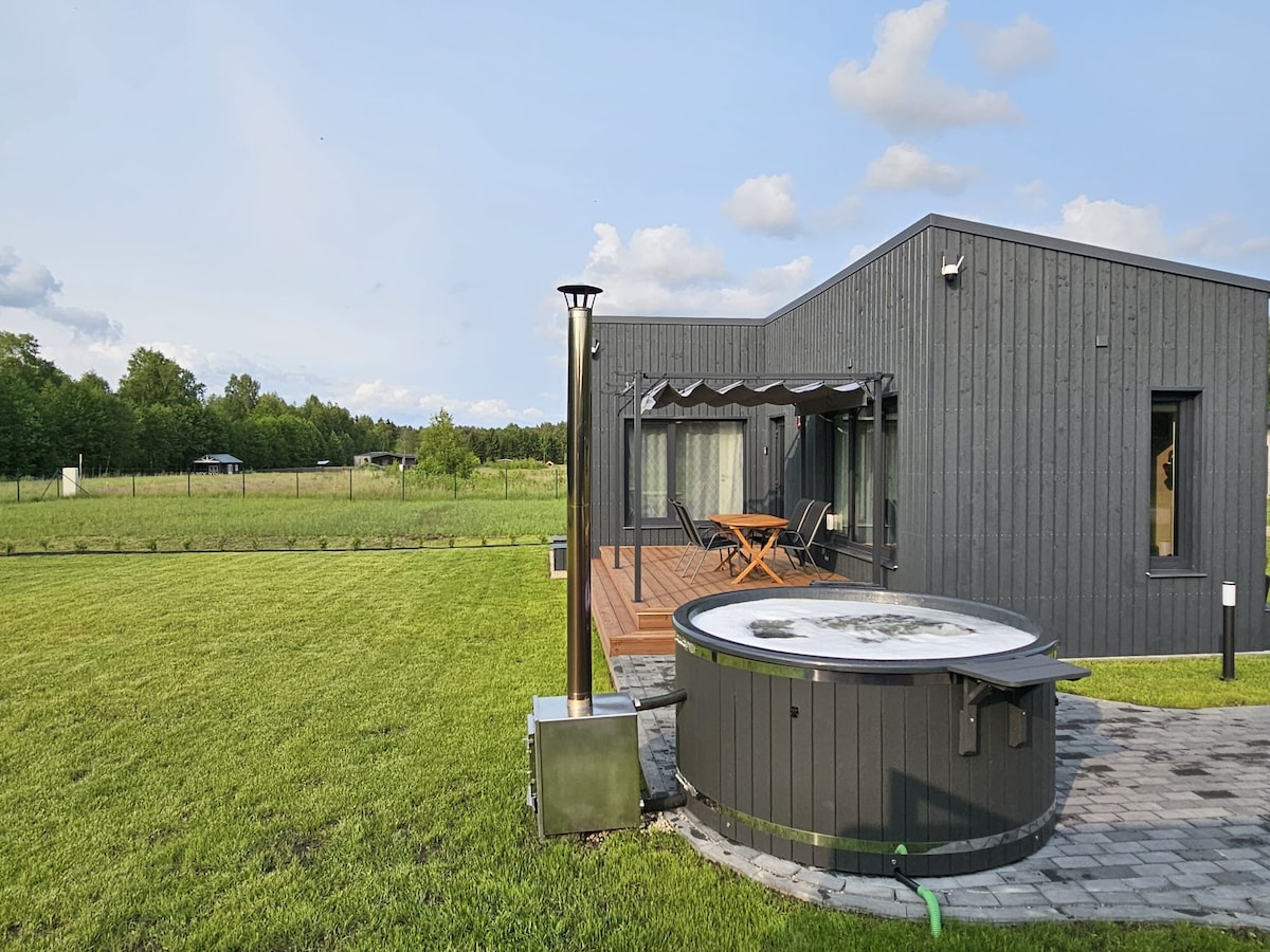 Located just 23 km from Riga, this cozy cottage is the perfect getaway to relax and unwind. In the winter, enjoy the warmth of a fireplace, soak in a hot bath, or book the sauna and hot tub for an extra fee. Summer offers opportunities to sunbathe on the terrace, swim in the pond, or, for an additional charge, fish and use paddleboards. The cottage is also ideal for travelers seeking a comfortable overnight stay before continuing their journey.