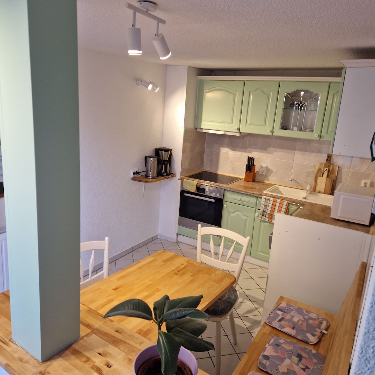 En la media bodega con grandes ventanales, junto a una cocina y sala de estar, hay un dormitorio doble y un baño. El sofá se puede convertir en un sofá cama para el tercer y cuarto huésped. La cocina ofrece ricos servicios, donde puedes relajarte y cocinar. En el baño, además de la ducha a ras de suelo, también hay un tocador grande y un inodoro. Una lavadora también forma parte del equipo. ¡Nos vemos pronto! Familia Richter