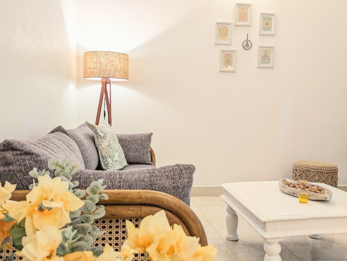 ¡Una encantadora casa a solo dos minutos a pie de la famosa playa de Calangute-Baga! Disfruta de días de playa perezosos, baños refrescantes o descansa en una cabaña de playa. Nuestra propiedad ofrece un entorno tranquilo y sereno. Relájate en tu propio balcón privado con vistas al jardín tropical después de un día explorando la dulce Goa. Al entrar en tu acogedor departamento, sentirás el ambiente acogedor y los detalles considerados que hacen que este espacio sea tan querido por nuestros huéspedes. Es el lugar ideal para recargar energías antes de tu próxima aventura.