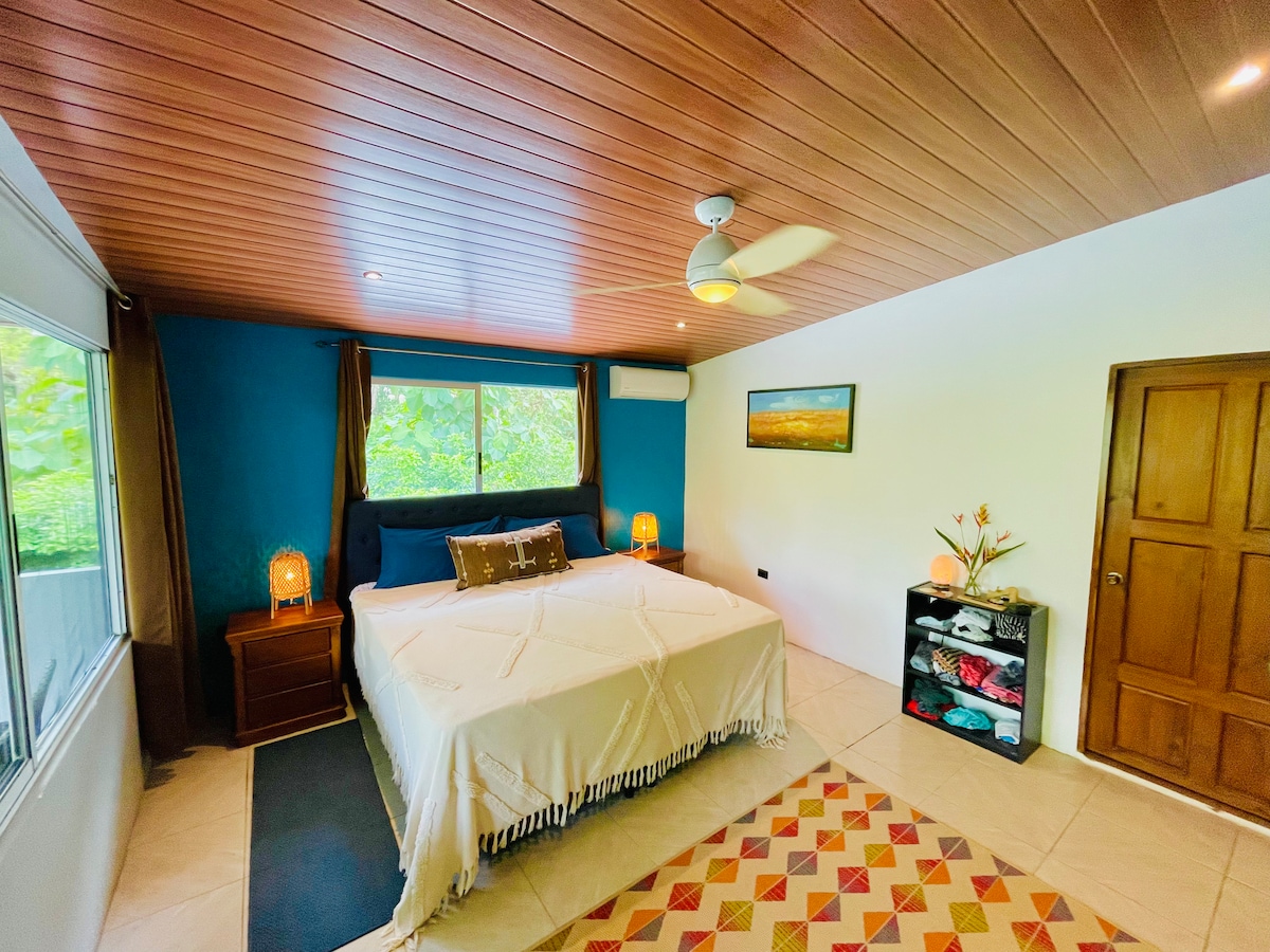 Casita Colibrí está escondida en una ladera tranquila cerca de los servicios de la ciudad. Disfrutá de aire acondicionado, un loft ventilado y vistas a la selva con avistamientos frecuentes de vida silvestre. Cociná en casa en la cocina bien equipada o relajate con atardeceres épicos en la amplia terraza. Ubicado a solo 1,6 km de la playa y a 1 km del mercado, es privado pero está conectado. El wifi de fibra óptica rápida con batería de respaldo te mantiene en línea, incluso durante breves cortes de energía.