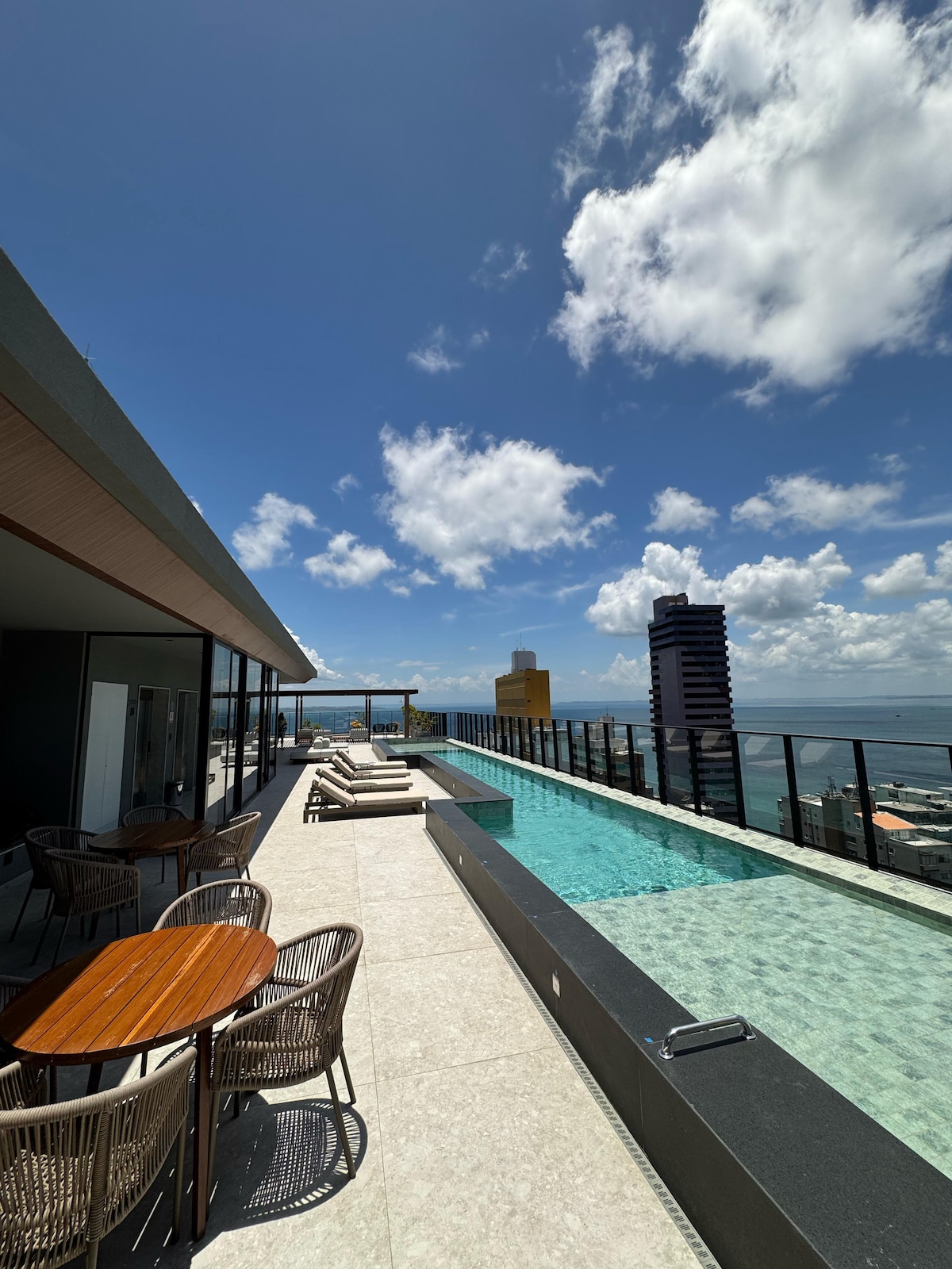 ¡Superanfitrión! Estudio boutique en el edificio Alive, en el barrio de Vitória, la zona más exclusiva de Salvador. Disfrutá de una pileta infinita y de unas vistas increíbles de la bahía de Todos los Santos. Moderno y finamente decorado, cómoda cama queen, aire acondicionado, Wi-Fi de 600 Mbps perfecto para trabajar o transmitir y estacionamiento gratuito. A solo 1,7 km de la playa de Porto da Barra, cerca de cafés, restaurantes y un supermercado a 60 m. Comodidad, elegancia y una ubicación privilegiada en un solo lugar.