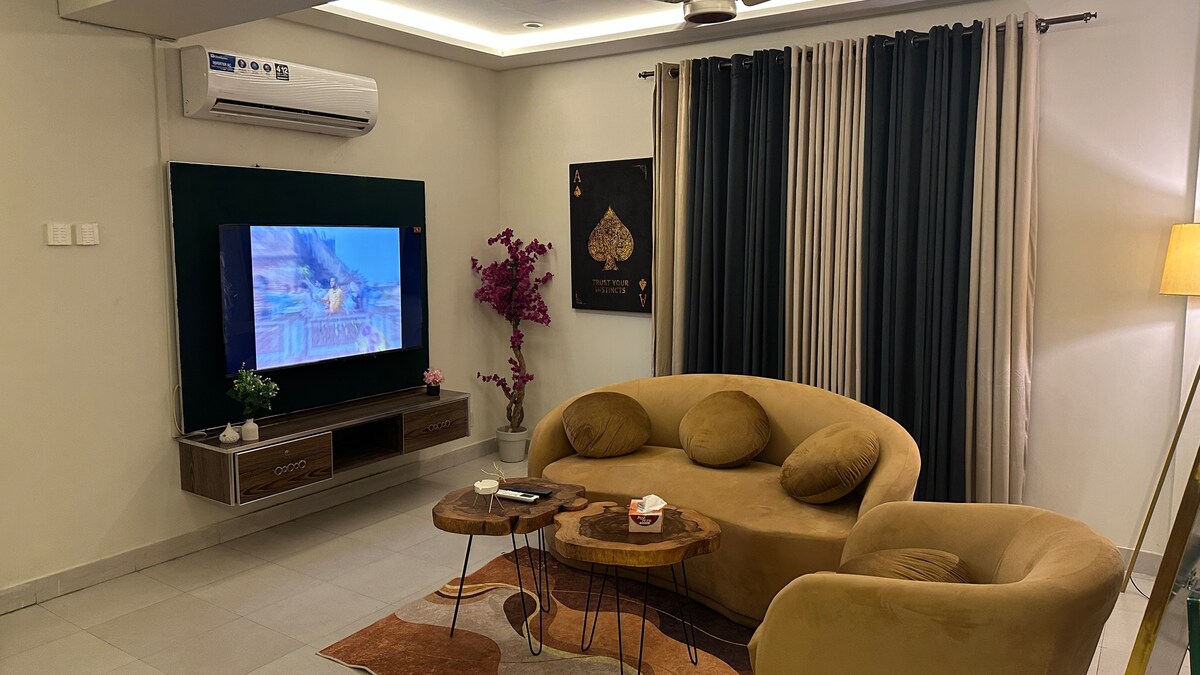 ¡Te damos la bienvenida a tu elegante y espacioso hogar lejos del hogar en Lahore! Este moderno departamento de 2 dormitorios está diseñado para ofrecer comodidad, ya sea que estés de visita por negocios, por placer o en familia. Ubicado en una zona privilegiada, ofrece todos los servicios básicos que necesitás, además de un toque de lujo que te va a encantar. ✨ Cómodo alojamiento de 2 dormitorios Living de⚡ lujo ✨Estacionamiento gratuito ☄️Aire acondicionado, wifi, Netflix Cocina ⚡totalmente equipada ✨3. Limpiá el baño Aeropuerto, DHA, centros comerciales, lugares históricos a minutos de distancia