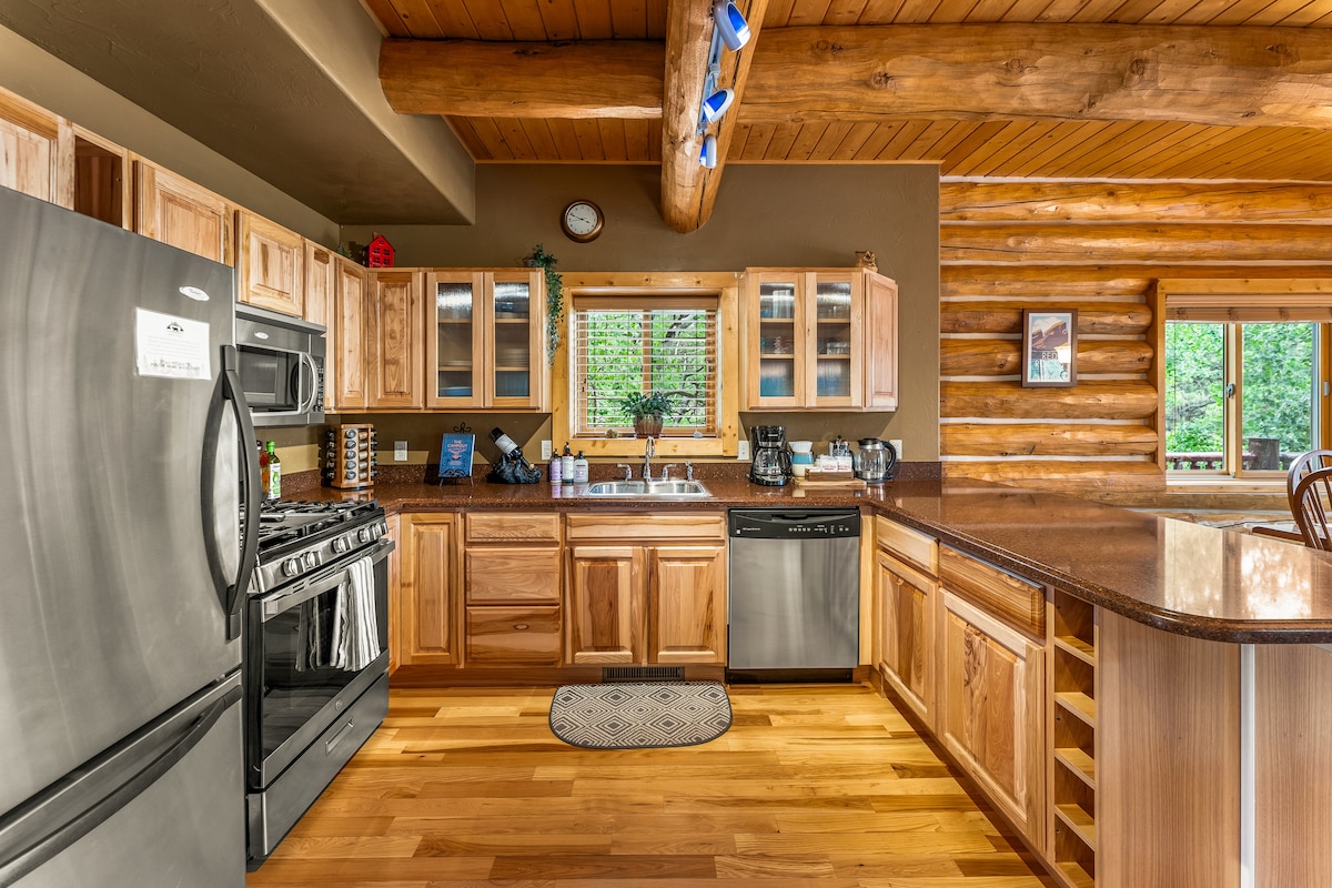 Desconectate, relajate y volvé a conectarte en Bailey Bear Haus, una acogedora cabaña de madera moderna escondida entre altos pinos y álamos con vistas a la montaña. Reuníos junto a la chimenea en la gran sala abovedada, jugá en la sala de juegos iluminada por el sol u observá las estrellas desde la terraza envolvente o el fogón del patio trasero. Con servicios bien pensados y espacios acogedores para reunirse, este es tu lugar para bajar el ritmo, respirar hondo y sentirte como en casa en las Montañas Rocosas.
