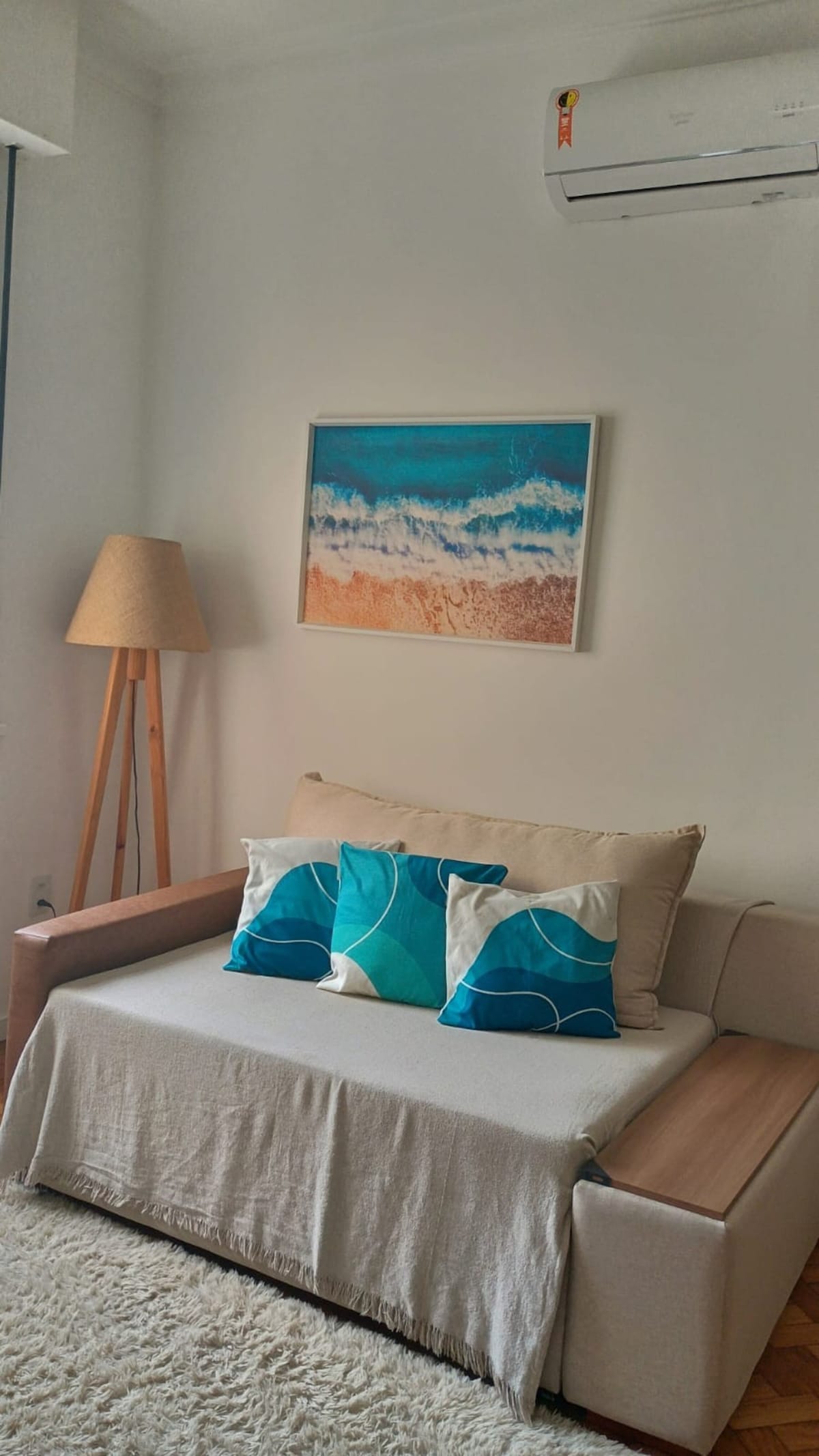 El loft de 45 m², que consta de una sala de estar y un dormitorio, fue diseñado por mí para ofrecer a los huéspedes el máximo confort y bienestar durante su estancia. Situado en un piso alto con vistas al morro dos irmãos y también con vista lateral a la playa de Ipanema desde el baño. Wifi de alta velocidad. TV con función smart, aire acondicionado en ambas habitaciones, lavadora y cocina equipada. En el dormitorio tenemos una cama queen y en la sala un sofá cama doble.