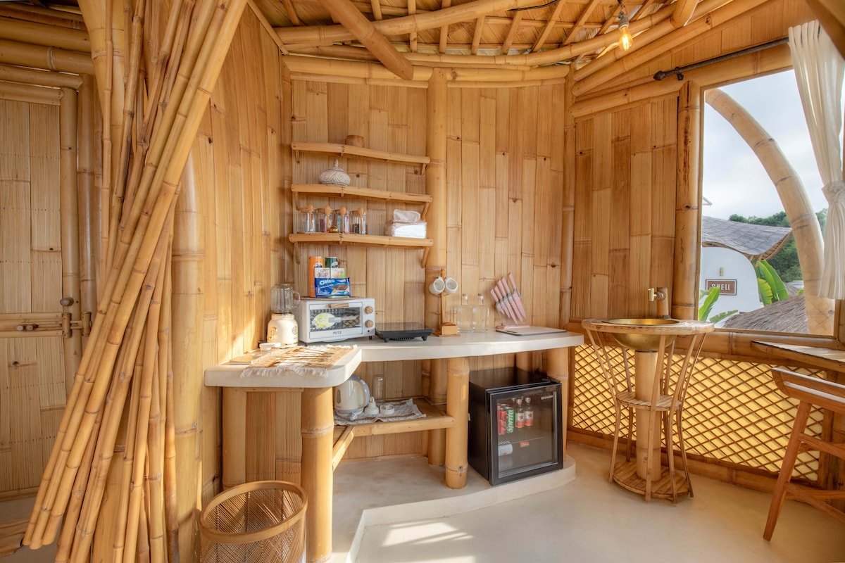 Relajate en el corazón de Bali en una exclusiva villa de bambú de lujo en Sidemen. Despertate con una vista impresionante del Monte Agung desde tu cama y relajate en tu jacuzzi privado rodeado de una naturaleza exuberante. Disfrutá de un desayuno de cortesía todas las mañanas y saboreá comidas deliciosas en nuestro restaurante, preparadas con productos orgánicos frescos de nuestra propia granja. Un mayordomo dedicado siempre está disponible para que su estadía sea perfecta y verdaderamente placentera.