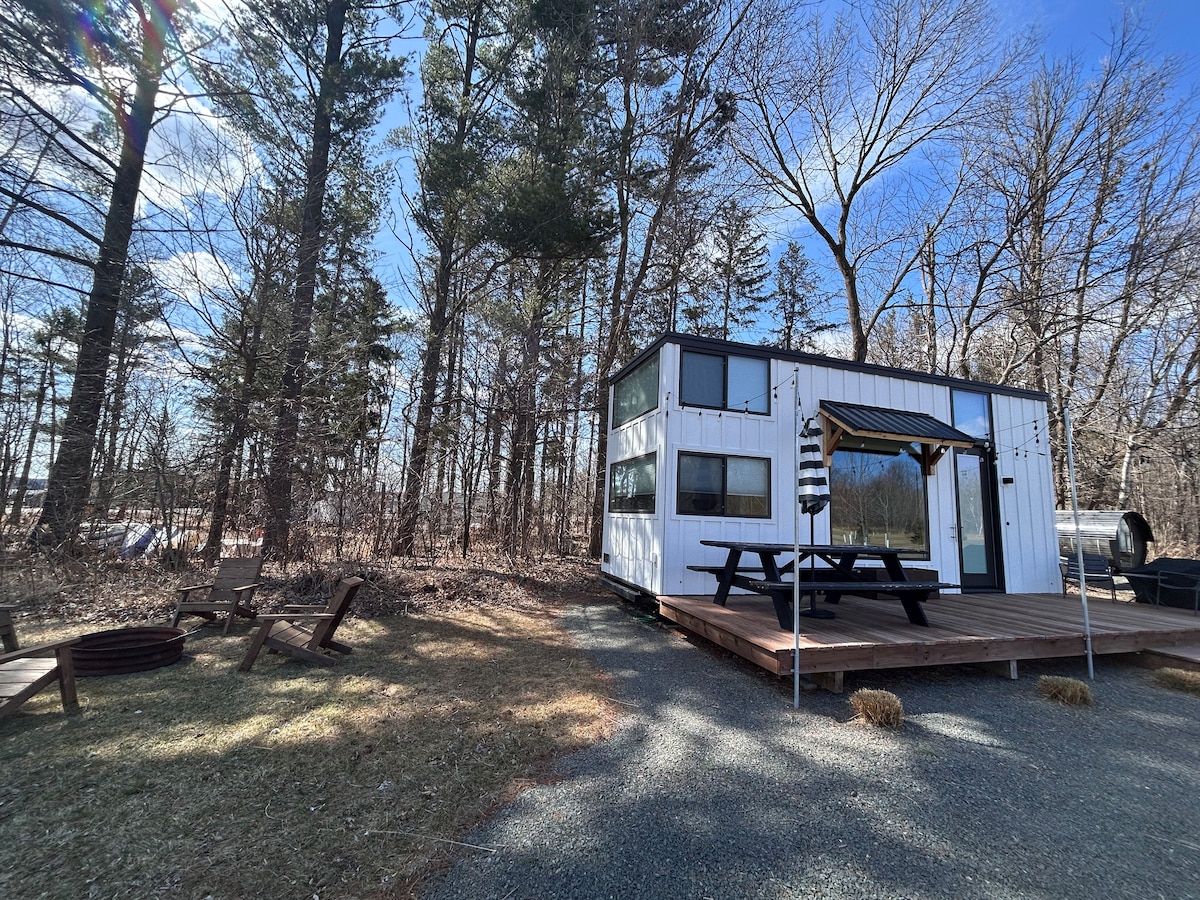 Nueva casa de 520 pies cuadrados 'no demasiado pequeña' en 20 acres de tierra salvaje. Diversión todo el año. Se admiten perros. Enchufe para autocaravanas y vehículos eléctricos. Fogata. Tus senderos de Snowshoe Creek y Little Wood Lake. Canoa, kayak y barca de pedales gratis. Barco mini-pontón 40 USD/día. Pesca. Internet. Wifi. Aire acondicionado. Chimenea de gas. Duerme por número. Baño encantador. Cocina de gas nueva. Máquina de hielo. 2 televisores. 3 ciudades + Burnett Dairy/Bistro, 4 campos de golf, DQ para comer bien, minigolf, antigüedades, multiteatro, playa Siren y «Music in Park». ¡Vida silvestre! Volverás.
