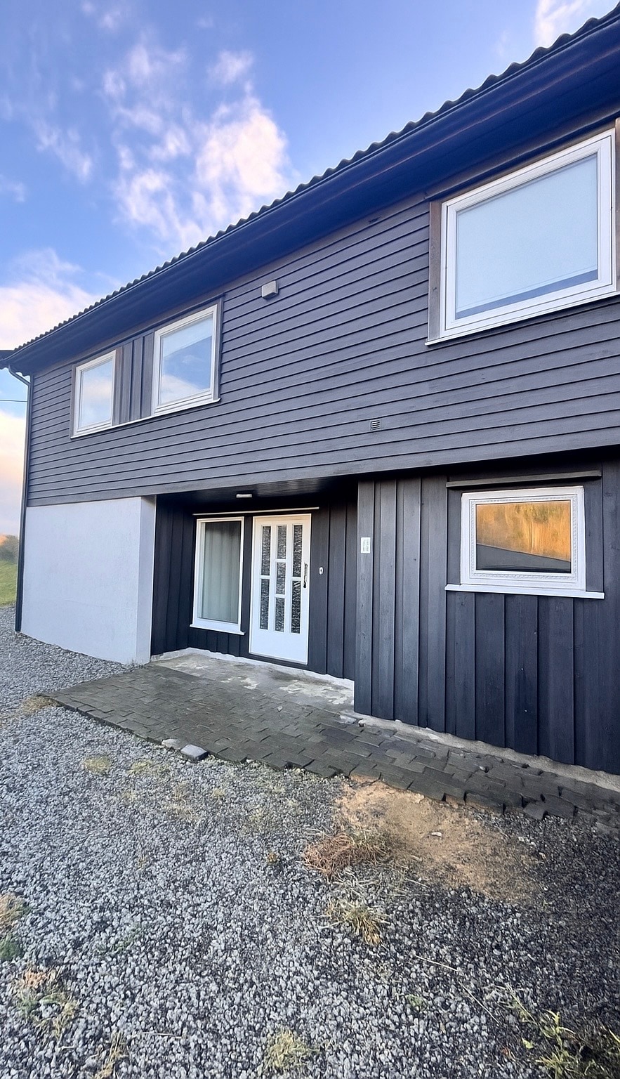Relájate con toda la familia en esta tranquila residencia con vistas panorámicas del fiordo, a poca distancia de tiendas, restaurantes y del mar con una zona de baño. Hay un gran apartamento en 1.etch., su propia escalera y entrada, 91 metros cuadrados, 3 dormitorios, sala de estar con sofá cama y 3 sillas de cuero, horno de chimenea, bomba de calor. En el baño, el lavabo, el cubículo de ducha, la lavadora y la secadora, el lavabo y la secadora combinados, la cocina y la habitación pequeña al lado, tienen estacionamiento gratuito. Solo se permite fumar afuera.