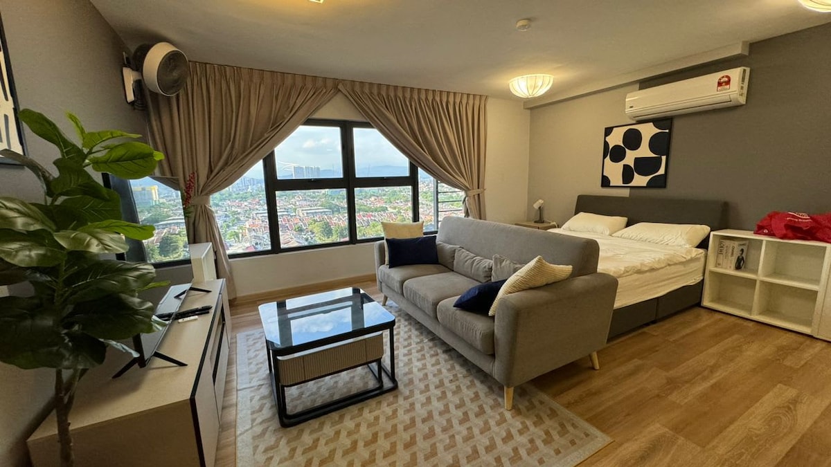 Ubicado en un animado barrio de la ciudad, nuestro elegante departamento en M Vertica ofrece una escapada acogedora con acceso sin problemas a los lugares imperdibles de Kuala Lumpur. A pocos minutos del centro de la ciudad, vas a estar rodeado de centros comerciales, opciones gastronómicas y excelentes conexiones de transporte para una estadía tranquila y agradable. Excelente ubicación: * A 14 minutos a pie del centro comercial Sunway Velocity (800 m) * A 7 minutos a pie de la estación MRT y LRT de Maluri (550 m) y Aeon Maluri * A 5 minutos en auto de MyTown e IKEA Cheras (2,5 km).